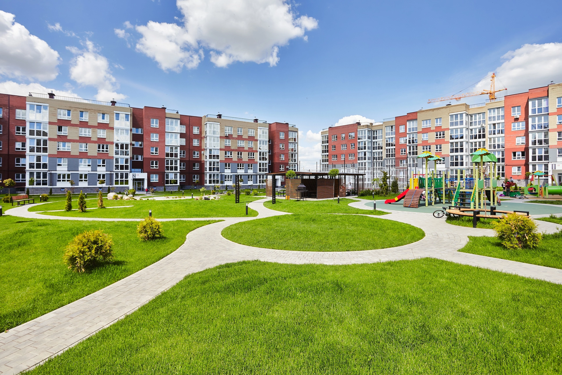 Предусмотрены: 3 детских сада (первый введен в эксплуатацию), школа, спортивный комплекс с бассейном, медицинский центр, торговый и торгово-развлекательный центры, магазины пошаговой доступности. Близость к природе, парки и скверы более 7 Га, пешеходные зоны. На территории пункт полиции и пункт охраны.