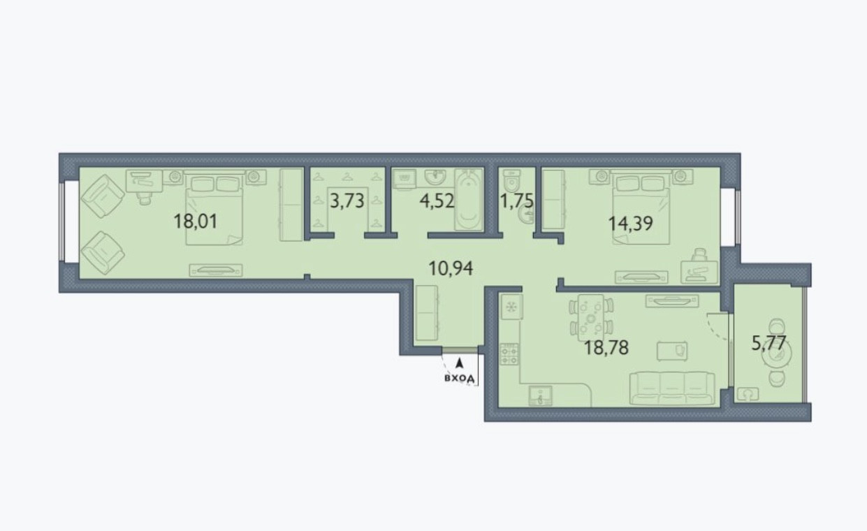 *Расстановка мебели на плане квартиры приведена в реальных масштабах.