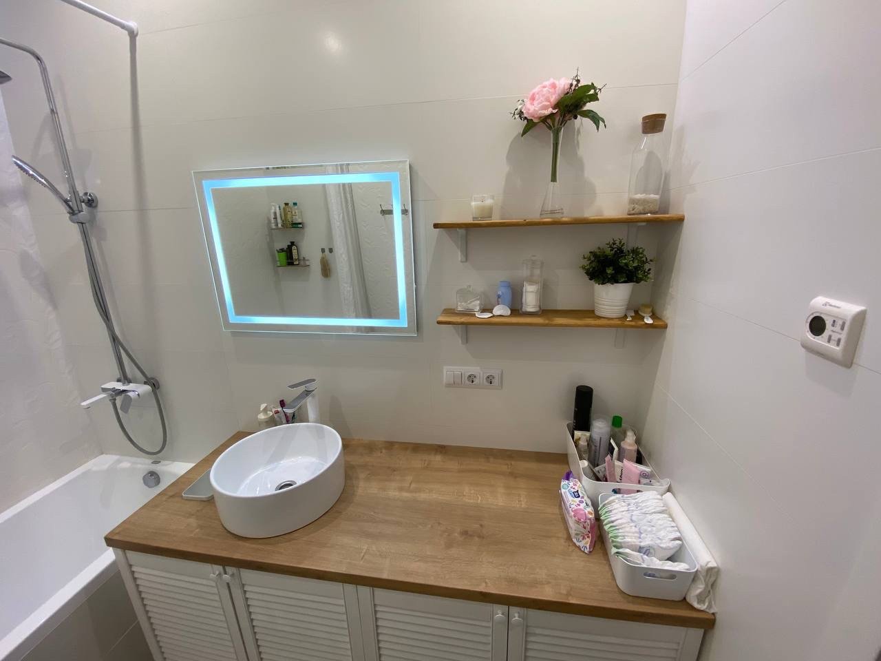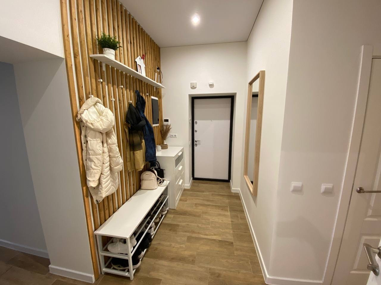 дизайнерский ремонт в скандинавском стиле (делали для себя, поэтому вся электрика и решения максимально удобны для жизни)