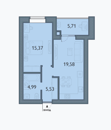 Жилая площадь 15.37 м2