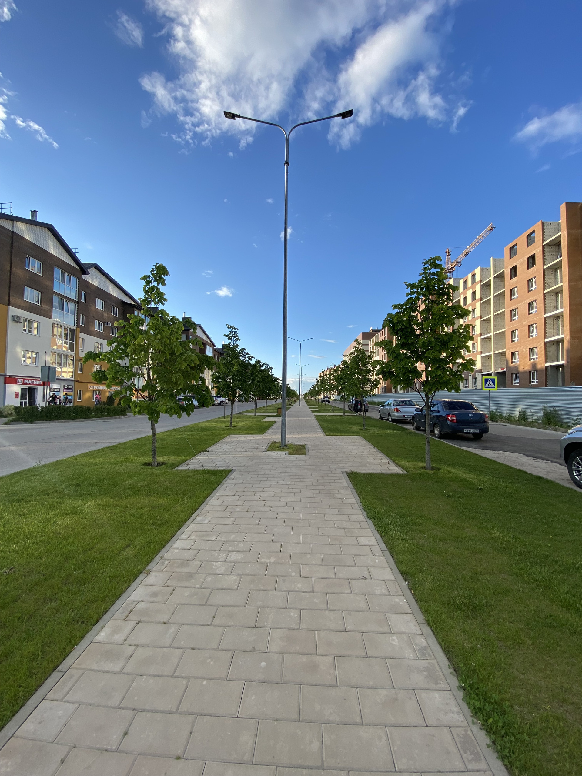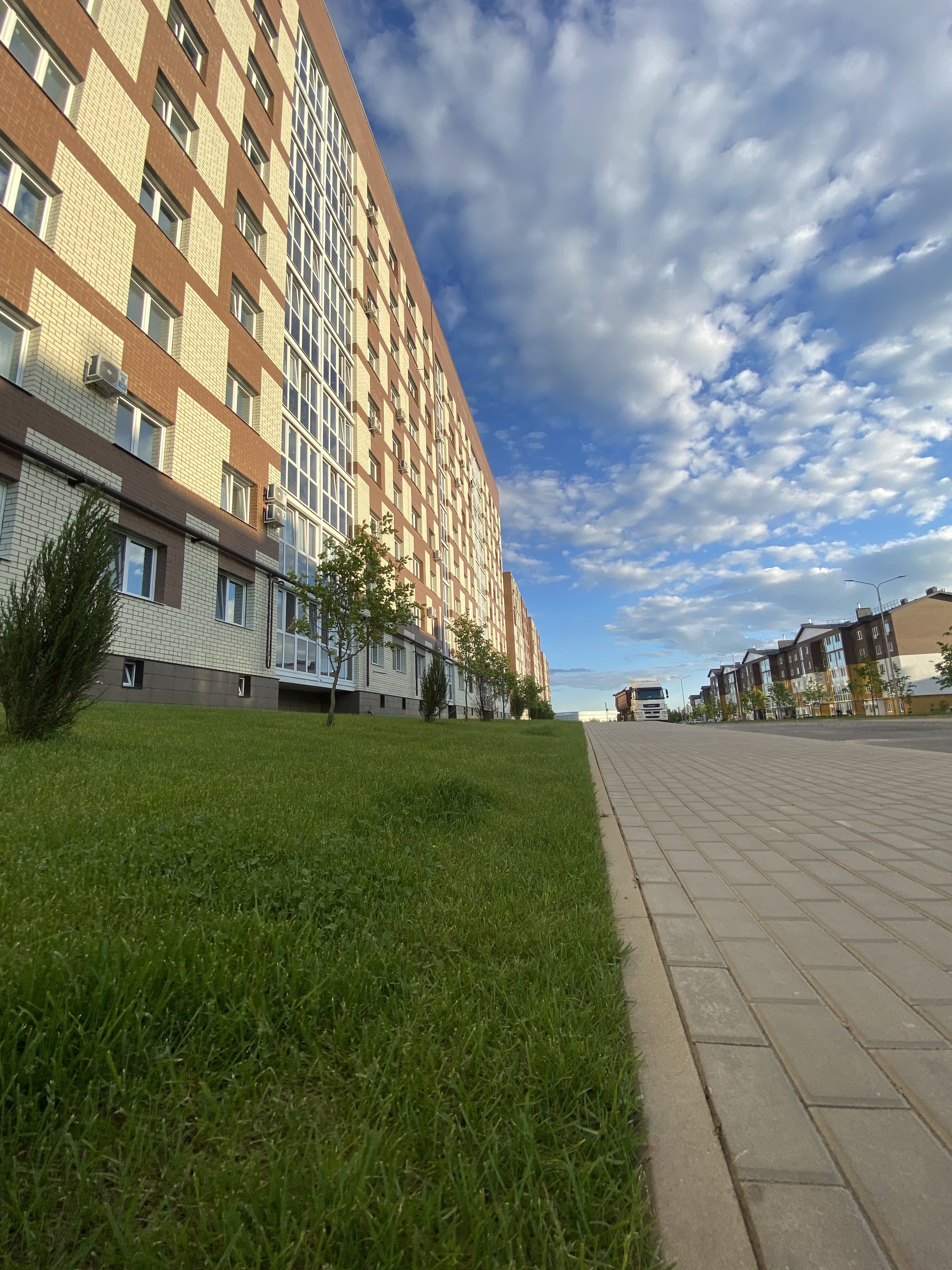 Огромный двор с детскими и спортивными площадками, местами для отдыха, большим количеством парковочных мест