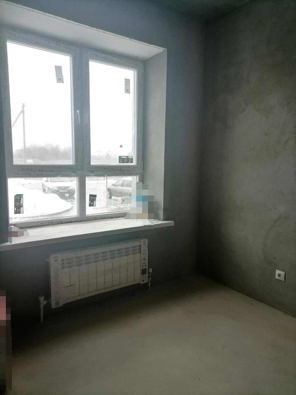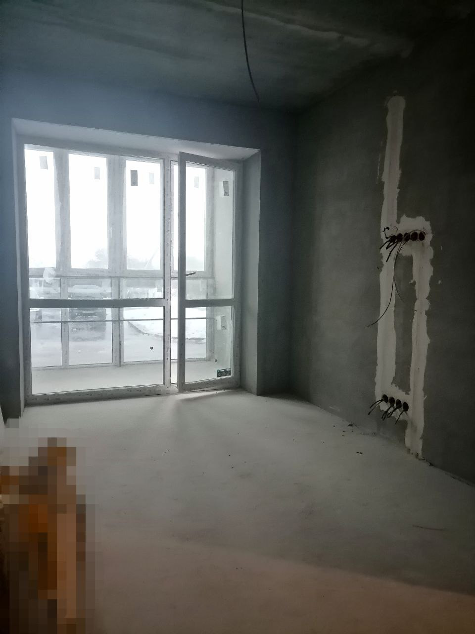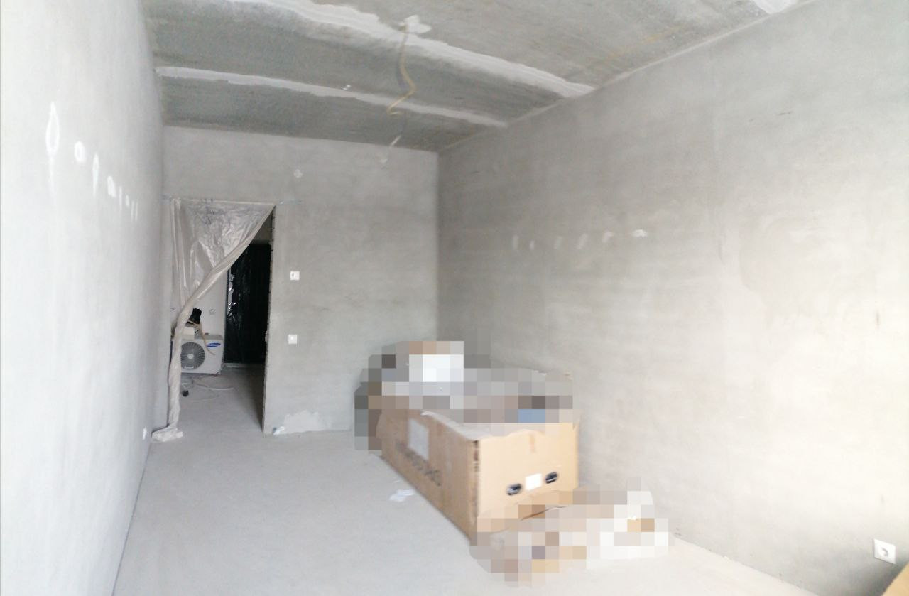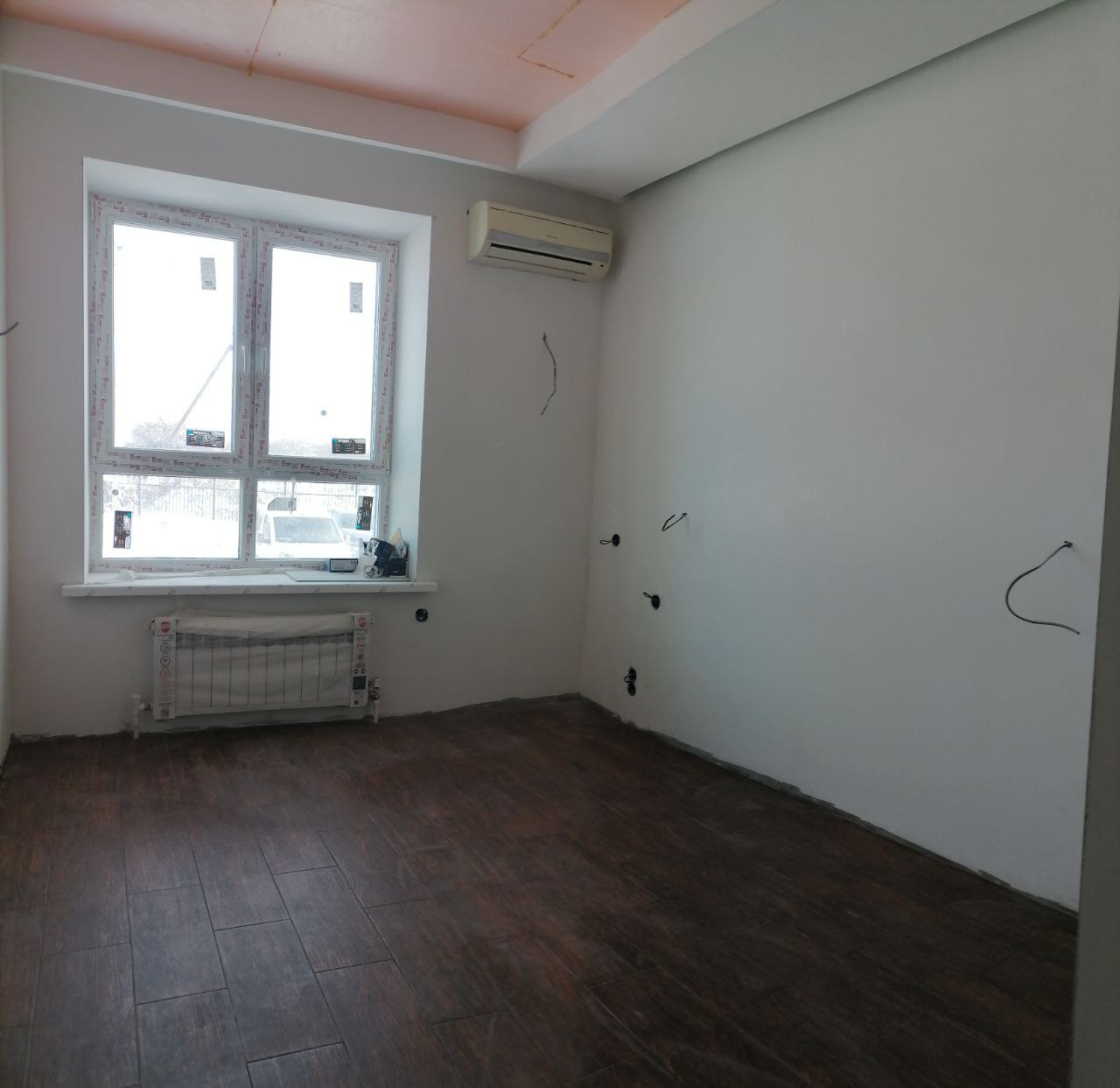 -В дальней комнате установлен кондиционер, стены подготовлены к последнему этапу для покраски или поклейки.