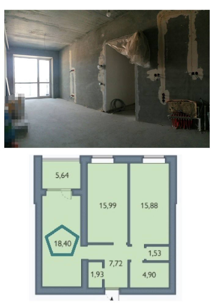 Площадь кухни 18.4 м2