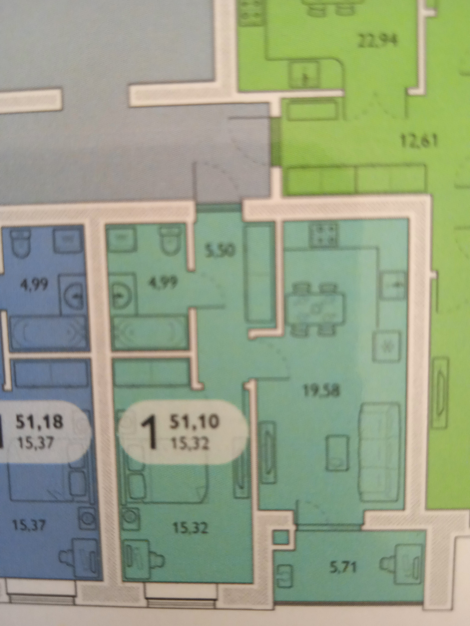Общая площадь 51.1 м2