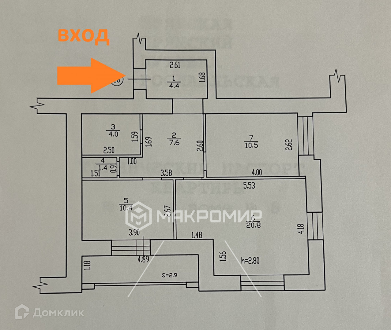 Высота потолков 2.9 м