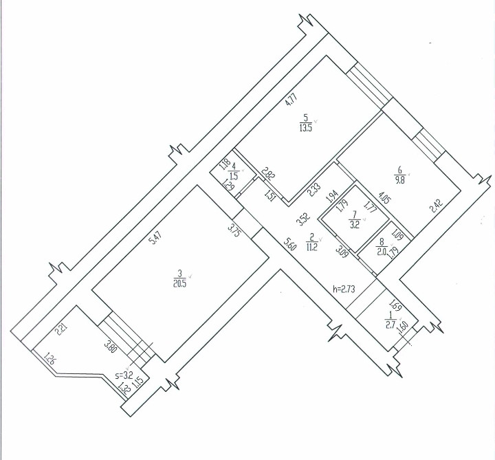 Высота потолков 2.74 м