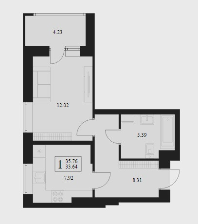 Общая площадь 35.8 м2