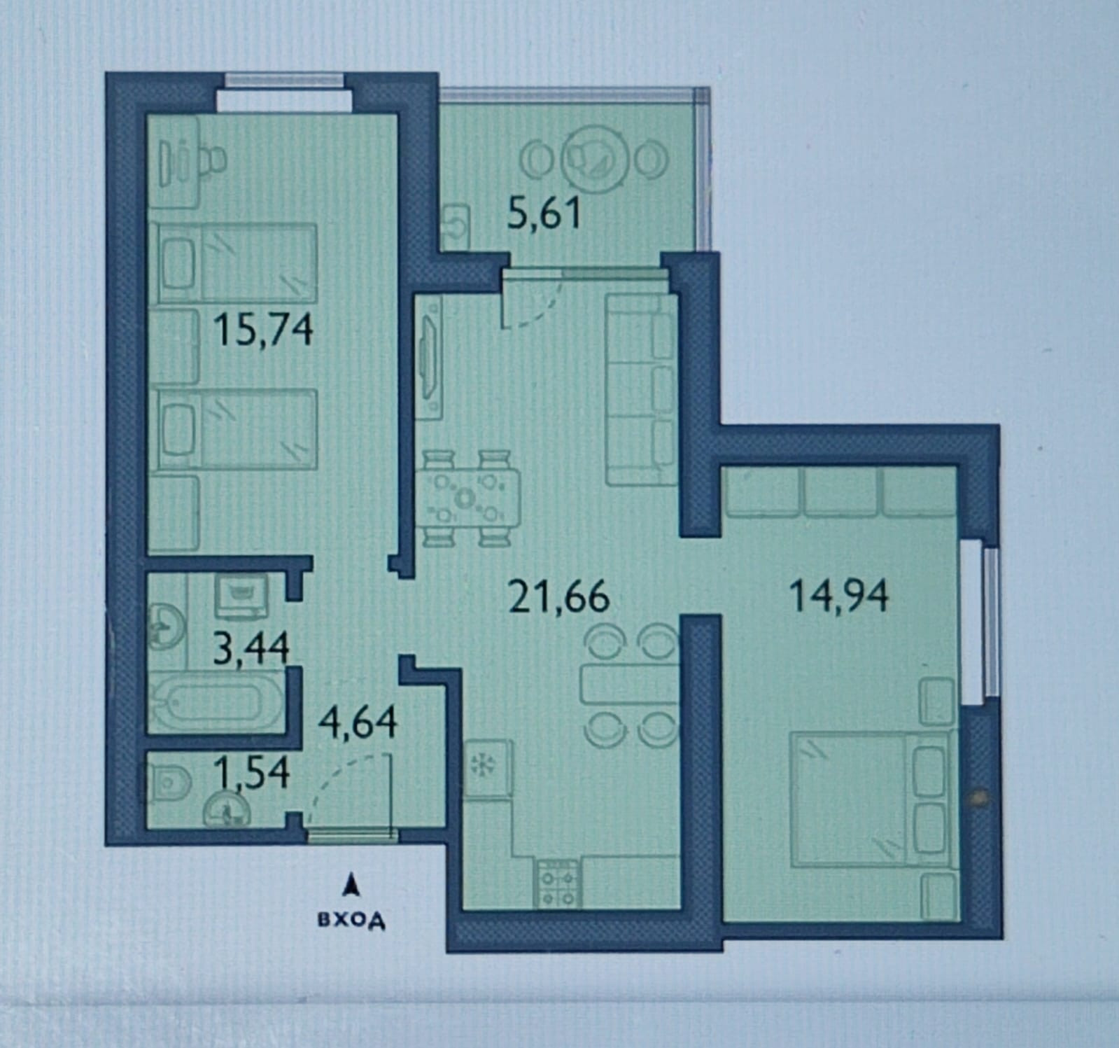 Общая площадь 68.1 м2