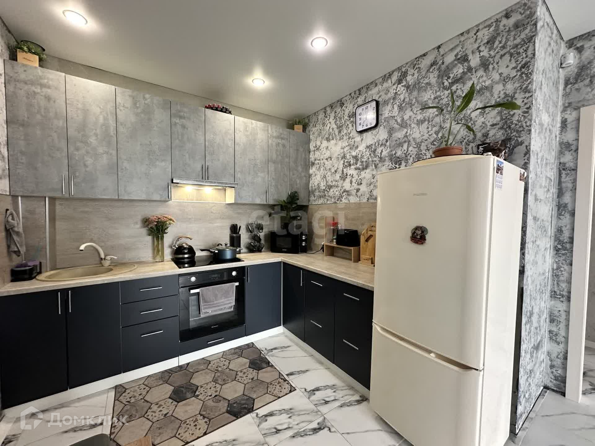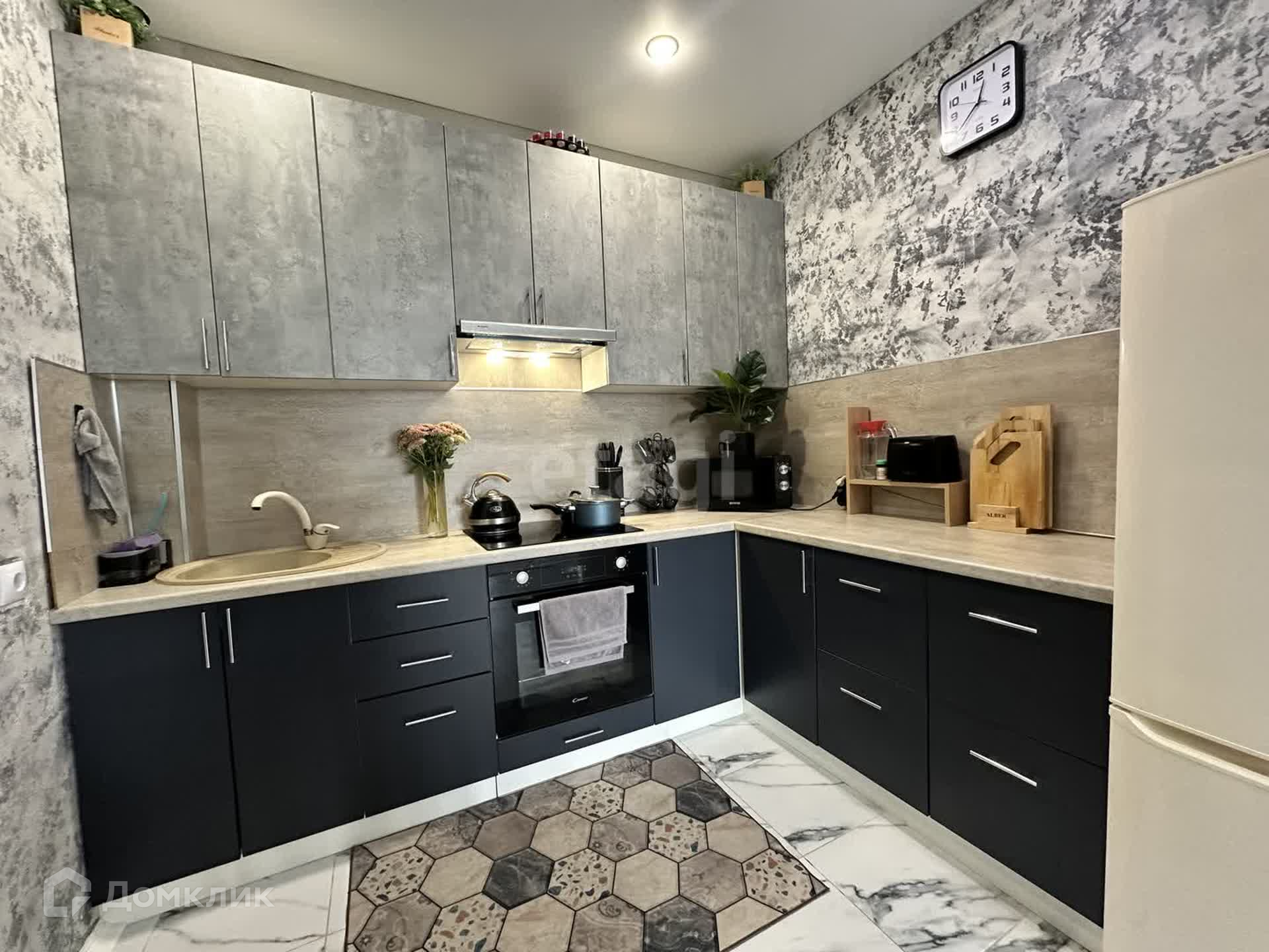 Большая кухня-гостиная, котел грамотно спрятан на лоджии. Теплый пол по всему периметру квартиры, кроме комнаты. Видеодомофон, климат-контроль.