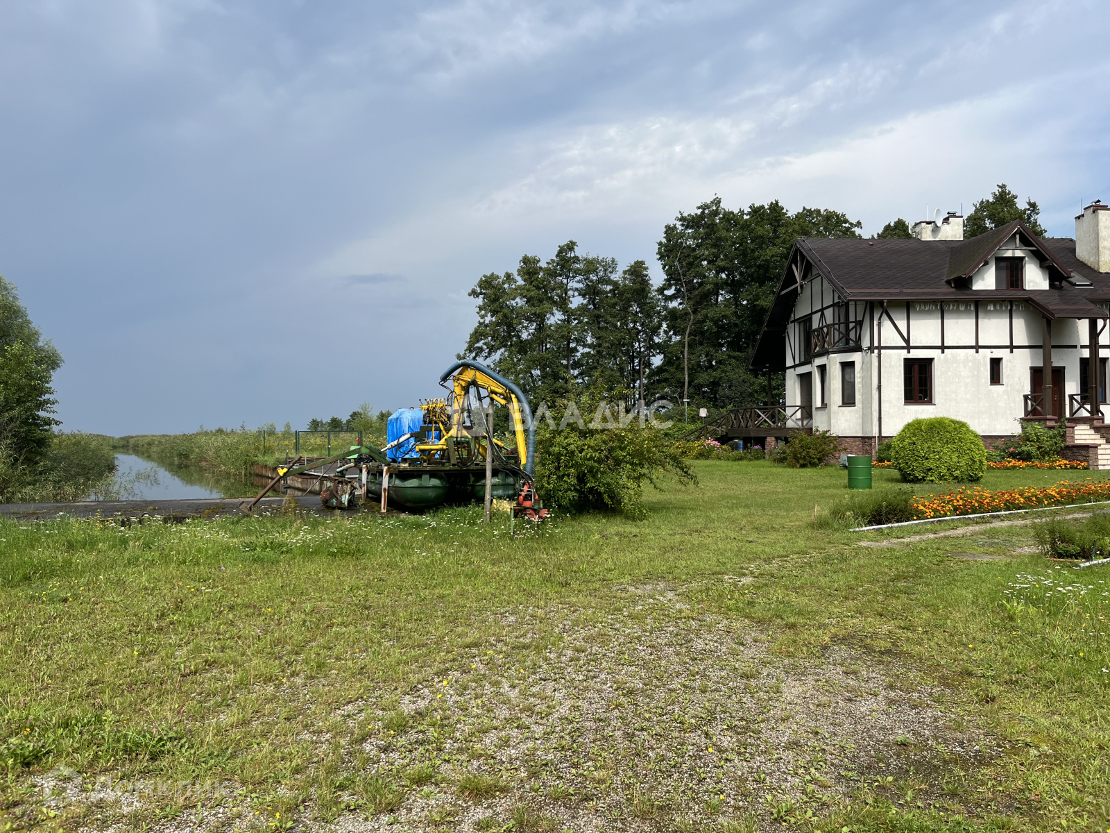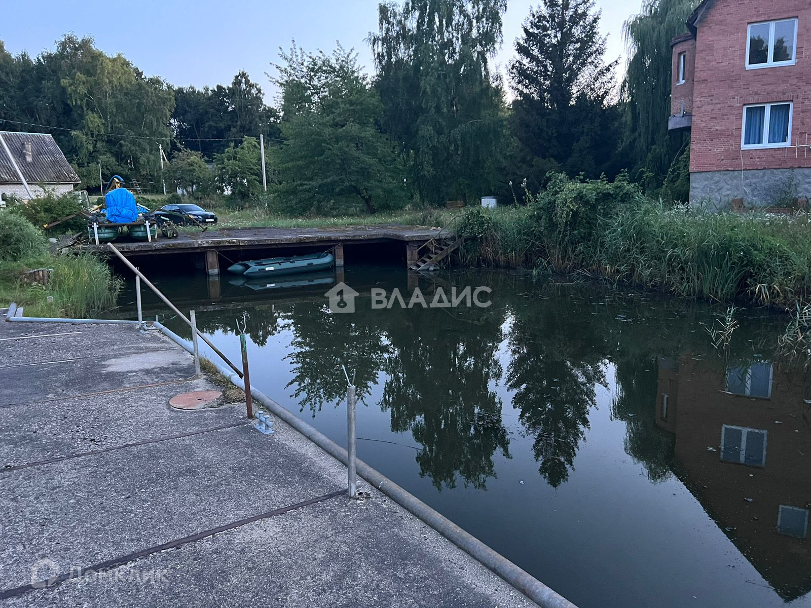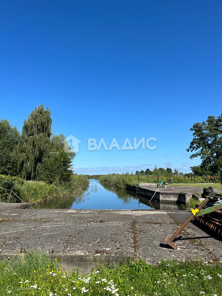 Участок (25 соток) находится  в собственности. Протока (канал) выходит в залив. Участок ухожен, есть теплица, гараж.