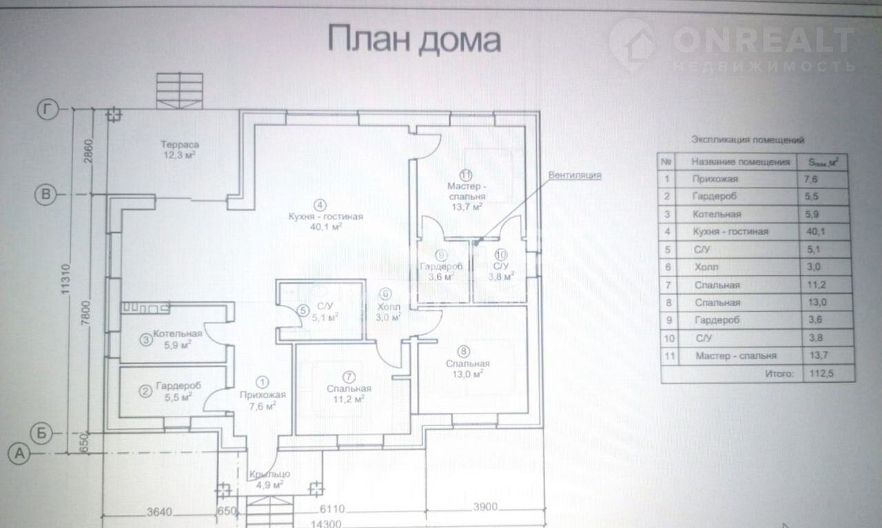 Удобная планировка: КУХНЯ-ГОСТИНАЯ 40,1 КВ.М, 3 ЖИЛЫХ КОМНАТЫ 13,7/13/11,2 кв.м., 2 САНУЗЛА, ОТДЕЛЬНАЯ КОТЕЛЬНАЯ, 2 ГАРДЕРОБНЫЕ, ТЕРРАСА 12,3 КВ.М., ХОЛЛ, КРЫЛЬЦО.
