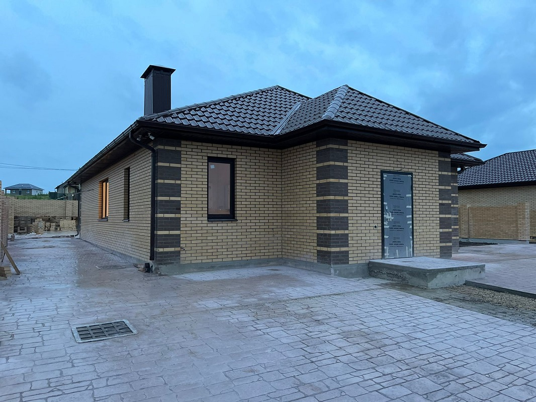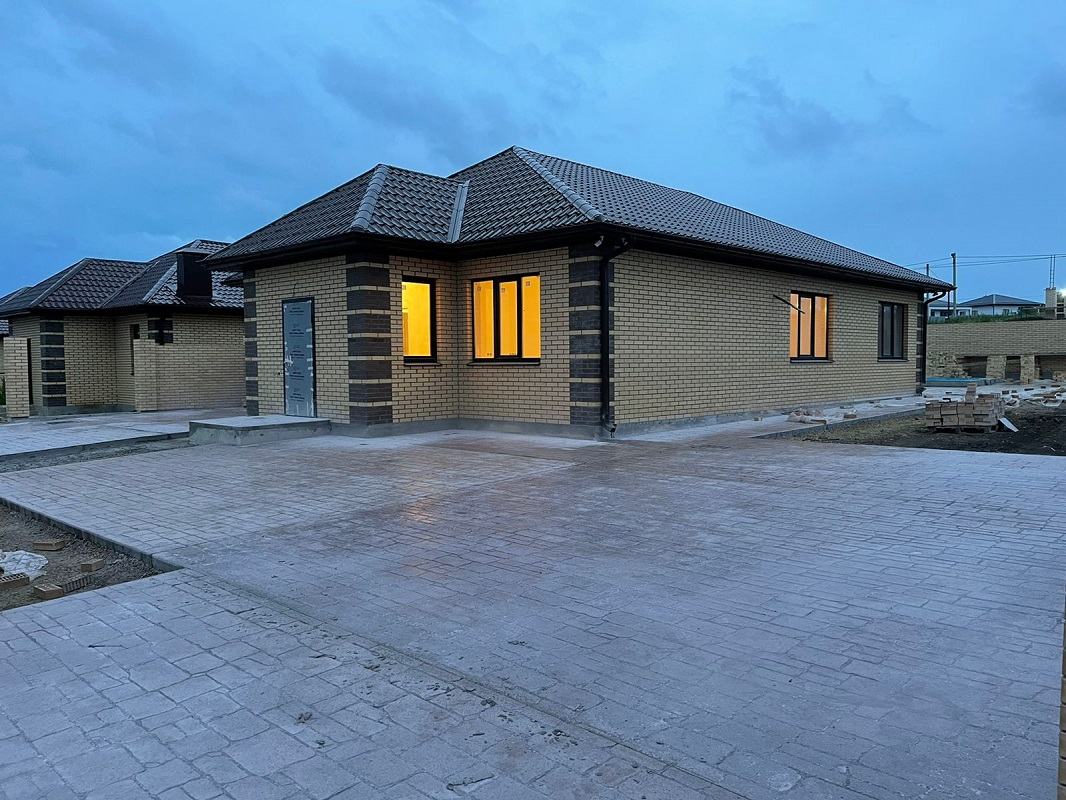 ID 4995    В продаже новый дом в ближайшем пригороде г-к Анапы, в курортном поселке в 1 км от песчаных пляжей Джемете. Отделка хорошая пред чистовая, стяжка пола, натяжные потолки, разводка электрики. Свет 15 кВт, центральное водоснабжение, септик 6 м3. Планировка: 3 спальни, кухня-гостиная, ванная, санузел, прихожая, тамбур и тех. помещение. По всему периметру участок огорожен забором, установлены распашные ворота, калитка. Залита отмостка и площадка для парковки авто. Благоустроенная придомовая территория.