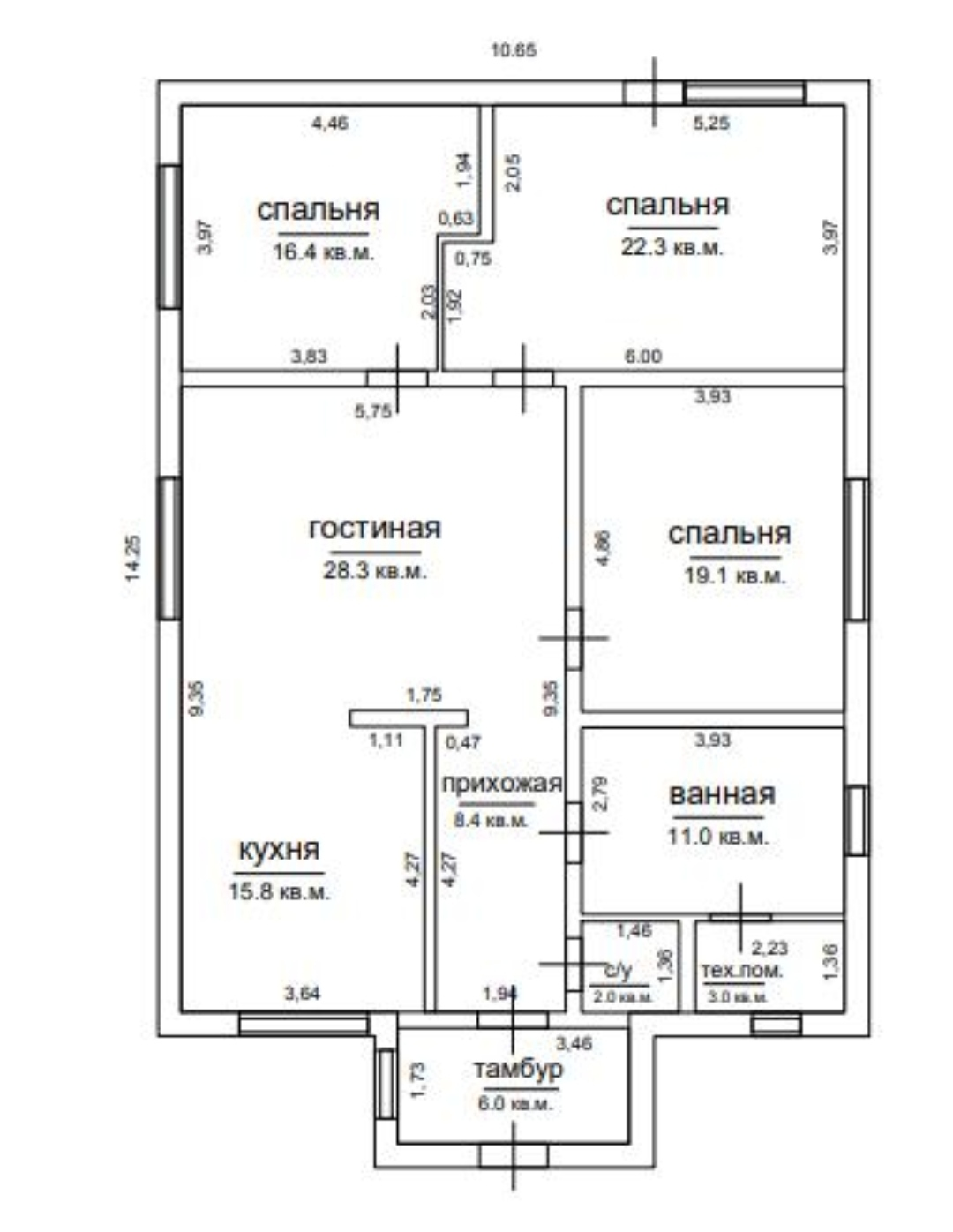 Общая площадь 76 м2