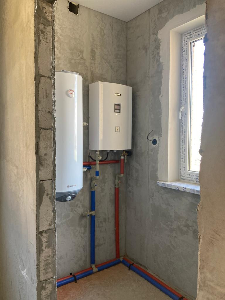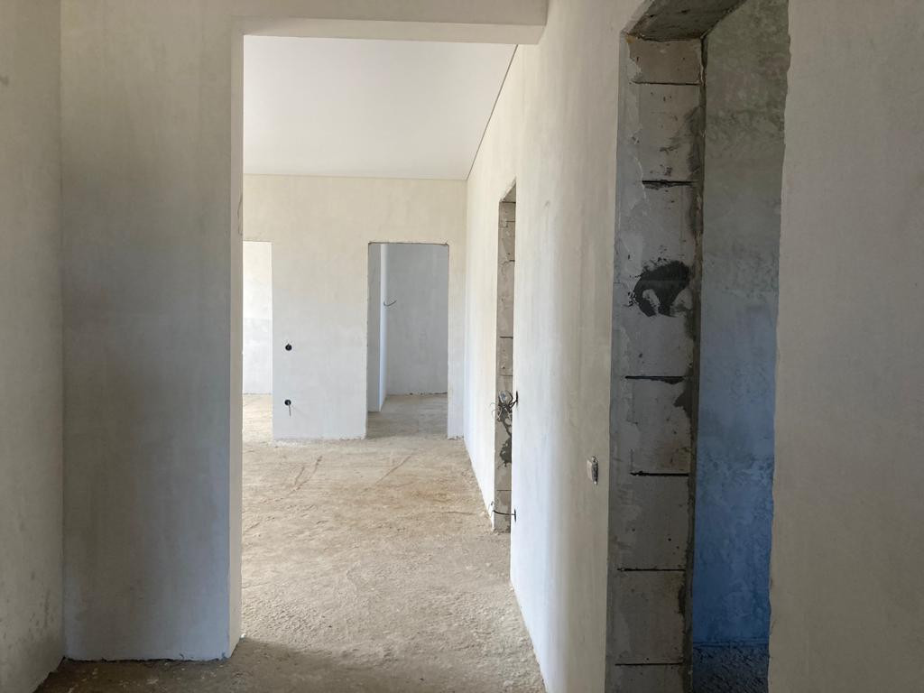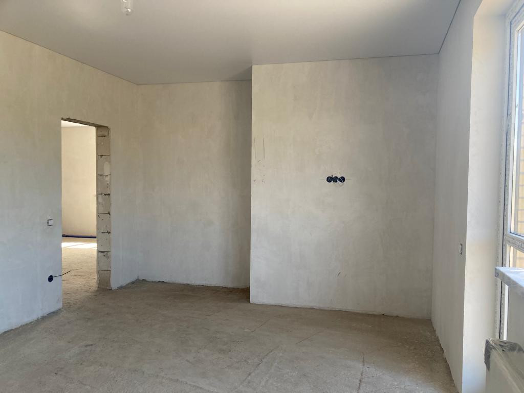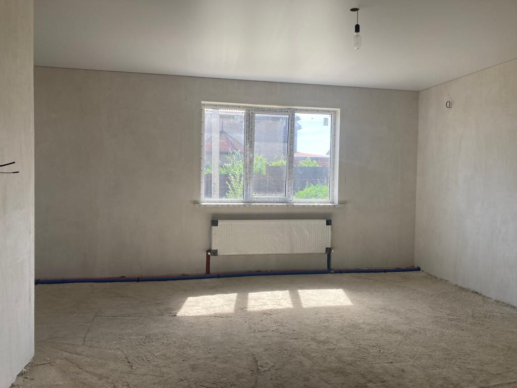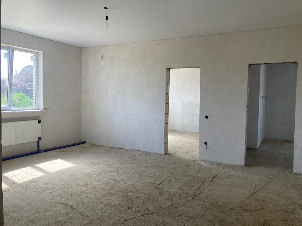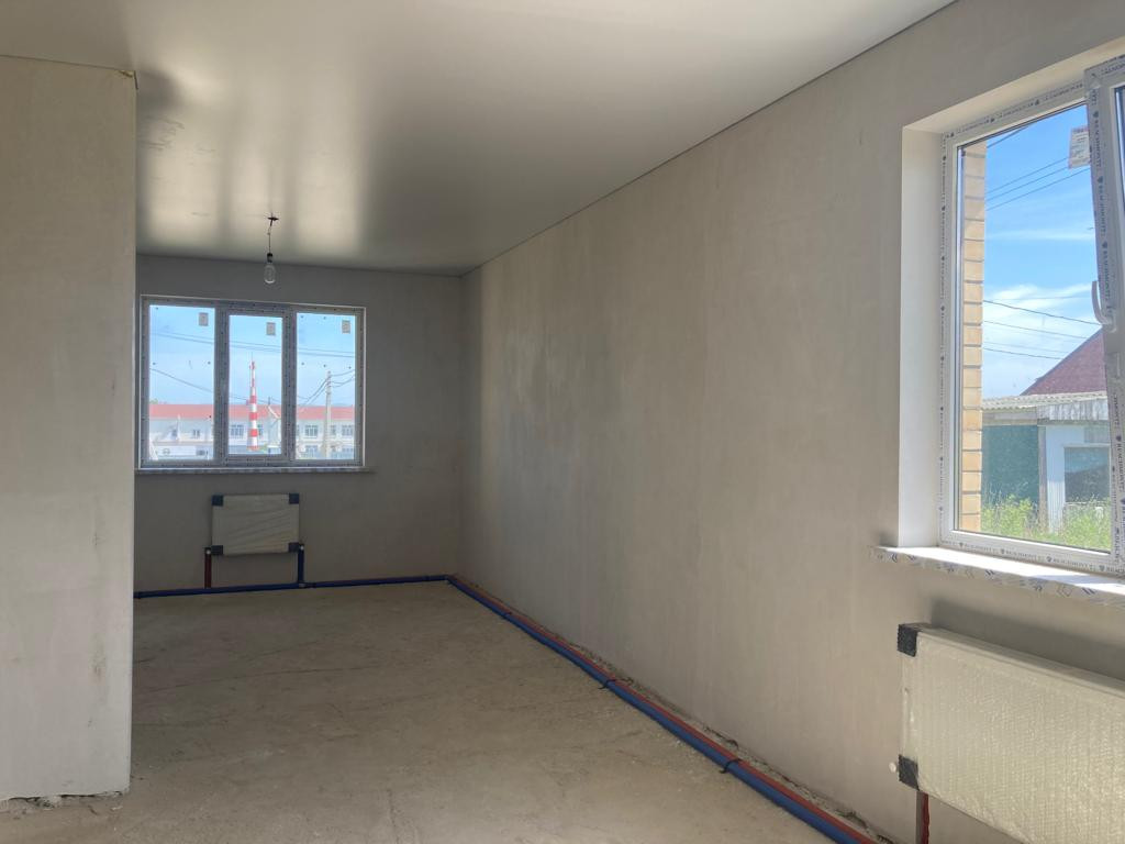 Внутренняя предчистовая отделка, выровненная штукатурка стен под обои, стяжка пола, разводка всех коммуникаций, установка оборудования для нагрева воды и отопления, натяжные потолки, металопластиковые окна, входная металлическая дверь.