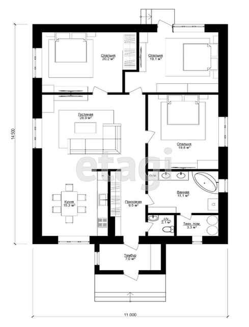 Общая площадь 141.4 м2
