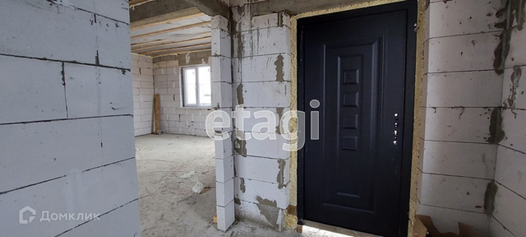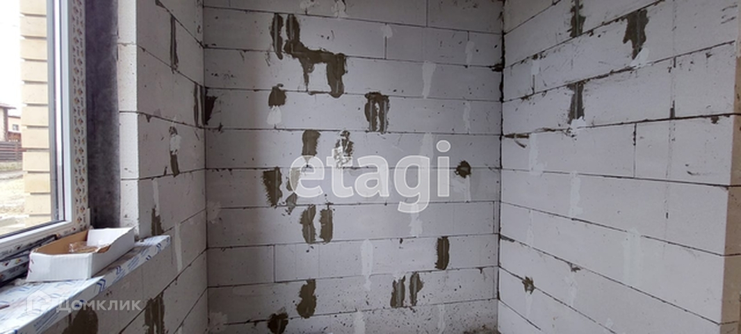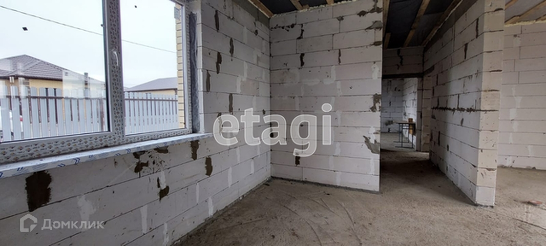 Стены дома возведены из газоблока, утеплены, фасад выполнен кирпичом.
