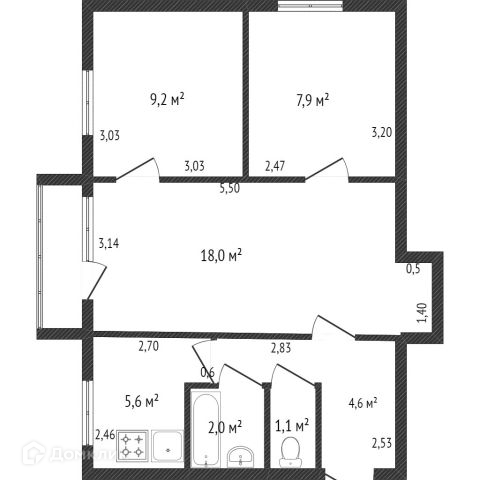 Общая площадь 58.3 м2