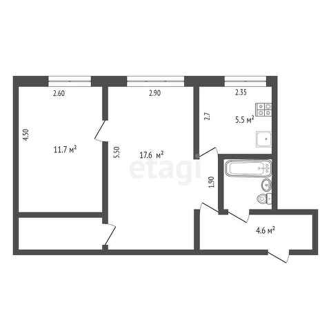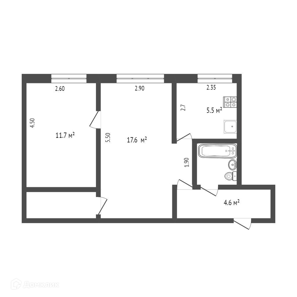 Общая площадь 43 м2