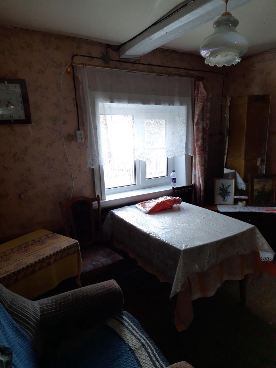 Продам дом на поселке Пыра, вдоль Московской трассы. Дом жилой ,отапливаемый(котел дровенной/угольный) крыша не течет,полы стены не гнилые,проводка и счетчик в доме поменяны,частично заменены окна на пластиковые.9,5+ 6 соток земли в аренде ,2 скважины,канализация,баня старенькая но телая и рабочая, два сарая (один из них оборудован для содержания разной  скотины) в другом глубокий погреб для хранения припасов, подпол в доме. Так же имеется стеклянная  теплица,парник,кустарники(смородина,крыжовник,слива),огород разработан под посадку,забор по периметру деревянный. Подьезд к дому с лицевой и с тыльной стороны. За домом сразу начинается лесной массив(грибы ,ягоды). Подана заяка на газификацию.Остановка и магазины в шаговой доступности.