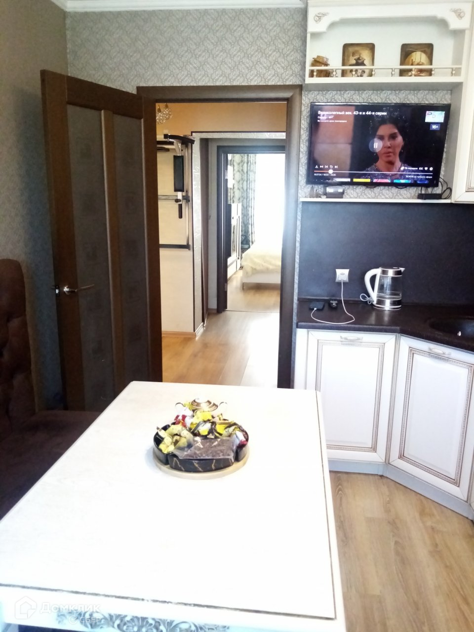 В прихожей, на кухне и лоджии теплые полы, стены и полы выровнены, покрытие - ламинат. Новая проводка. Сан узел раздельный в дорогой импортной плитке, стоит душевая кабина, система инсталляции. В комнате кондиционер. Лоджия утеплена, окна лоджии выходят на церковь. Рядом детский сад, школа, продуктовый магазин "Апельсин", Аптека, Почта.