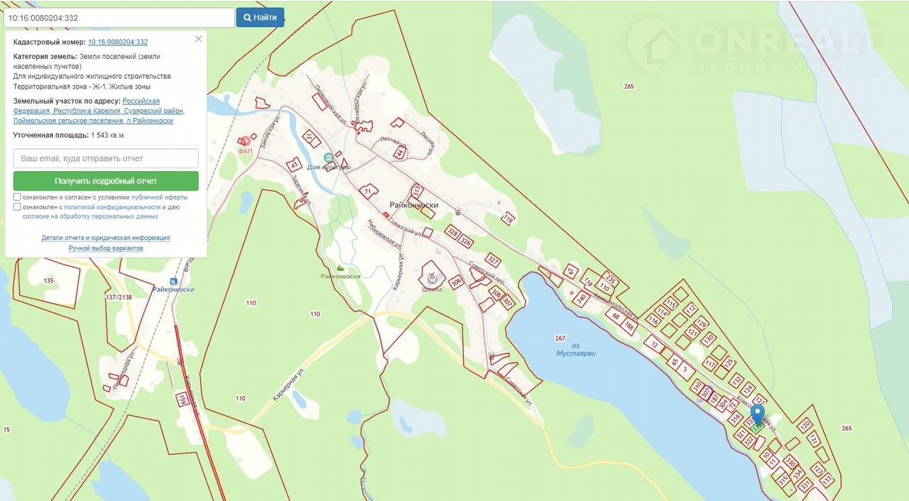 Кадастровый номер участка 10:16:0080204:332,