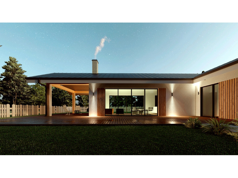 Дом 1-этажный каркасно-панельный 2022 года постройки, выполнен в современном стиле с панорамным остеклением и видом на озеро, общей площадью 104.7 кв.м.