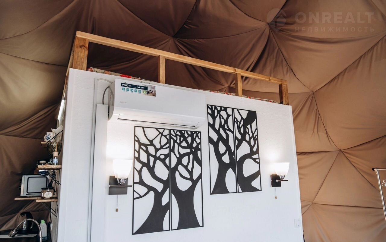 В жаркие дни наших гостей спасает от зноя кондиционер. Ещё в куполе есть телевизор, санузел, душевая (предоставляем чистые полотенца и фен), оборудованная мини - кухня, в которой есть всё: от варочной панели и СВЧ печи до холодильника, столовых приборов, кофеварки и посуды.