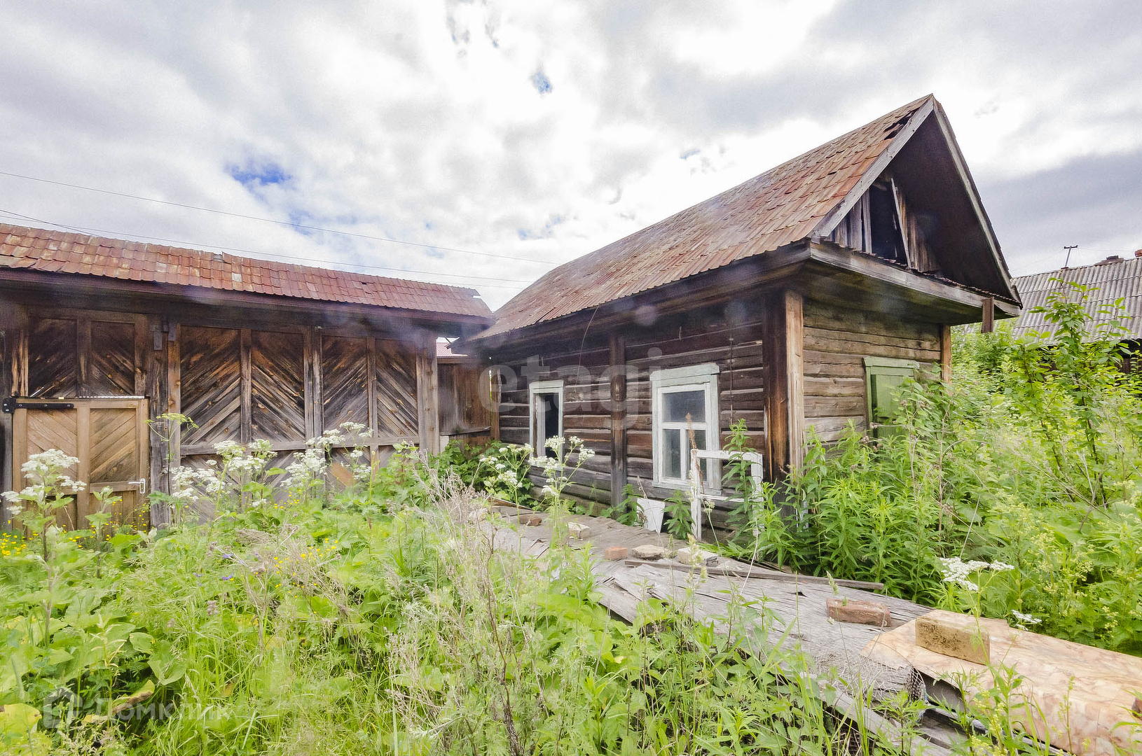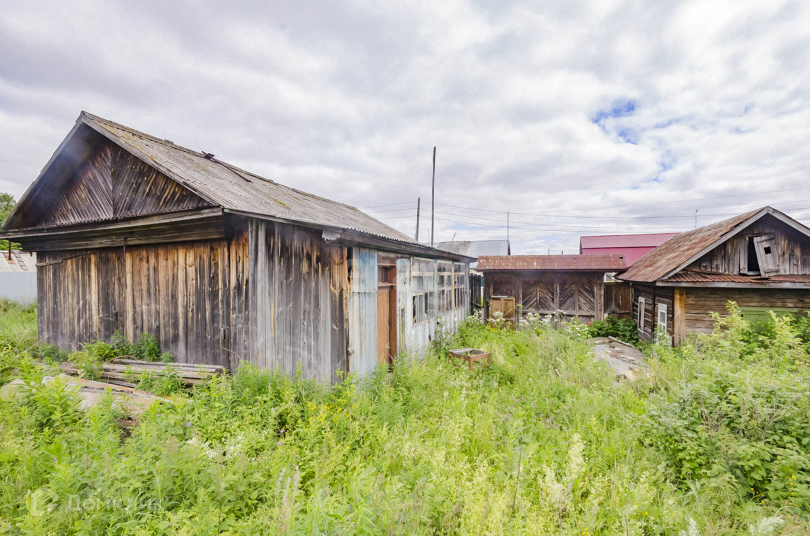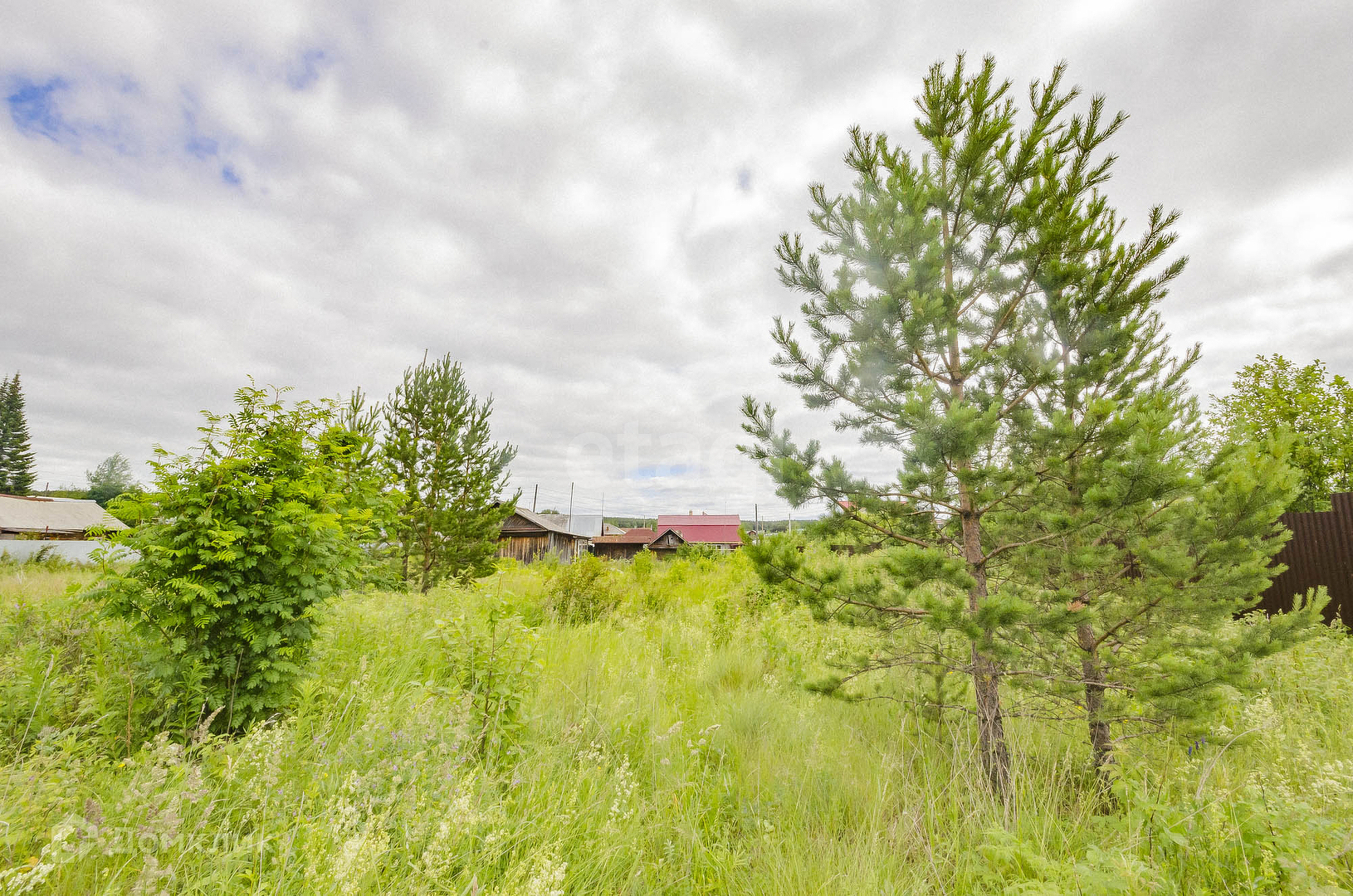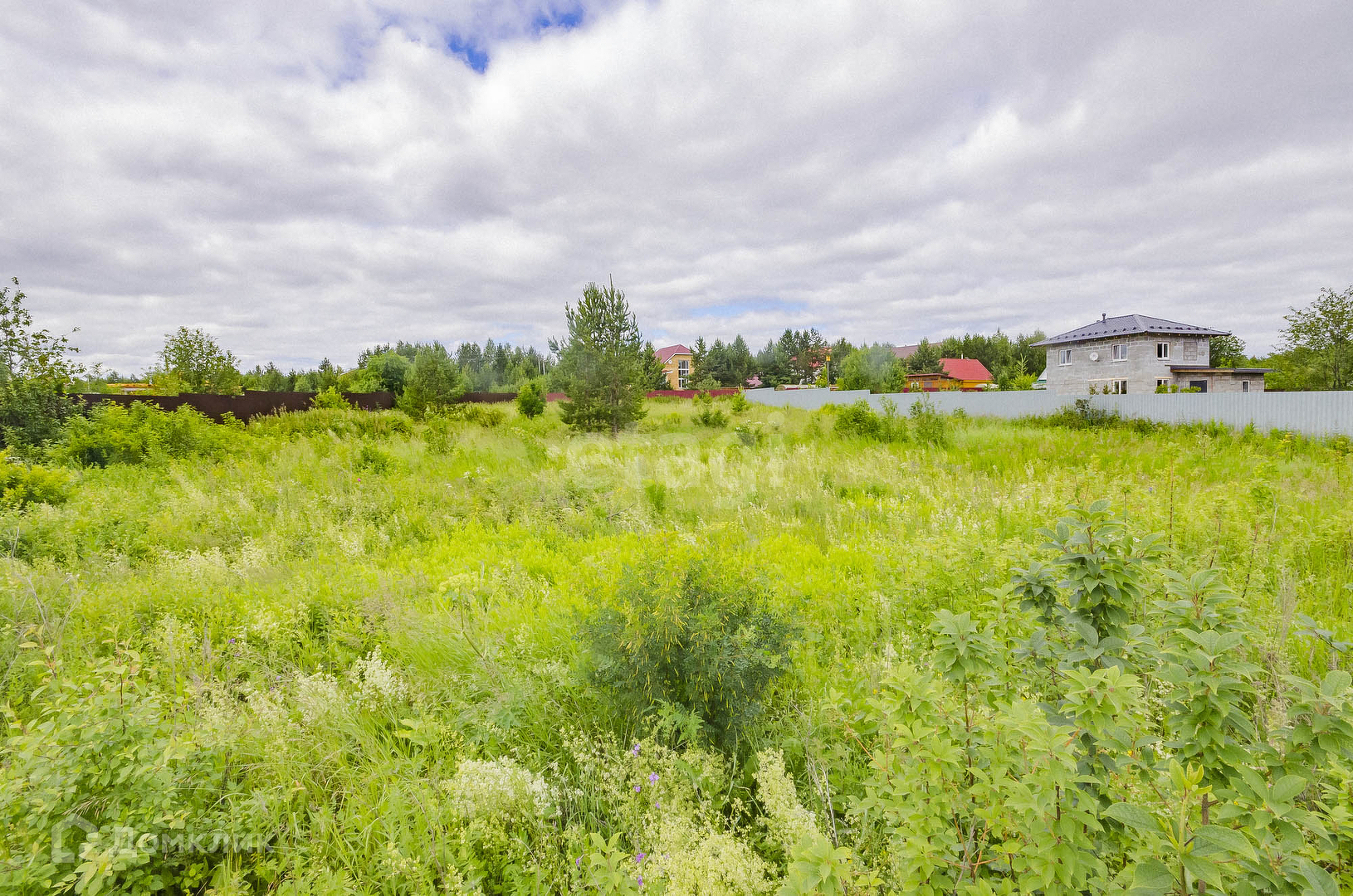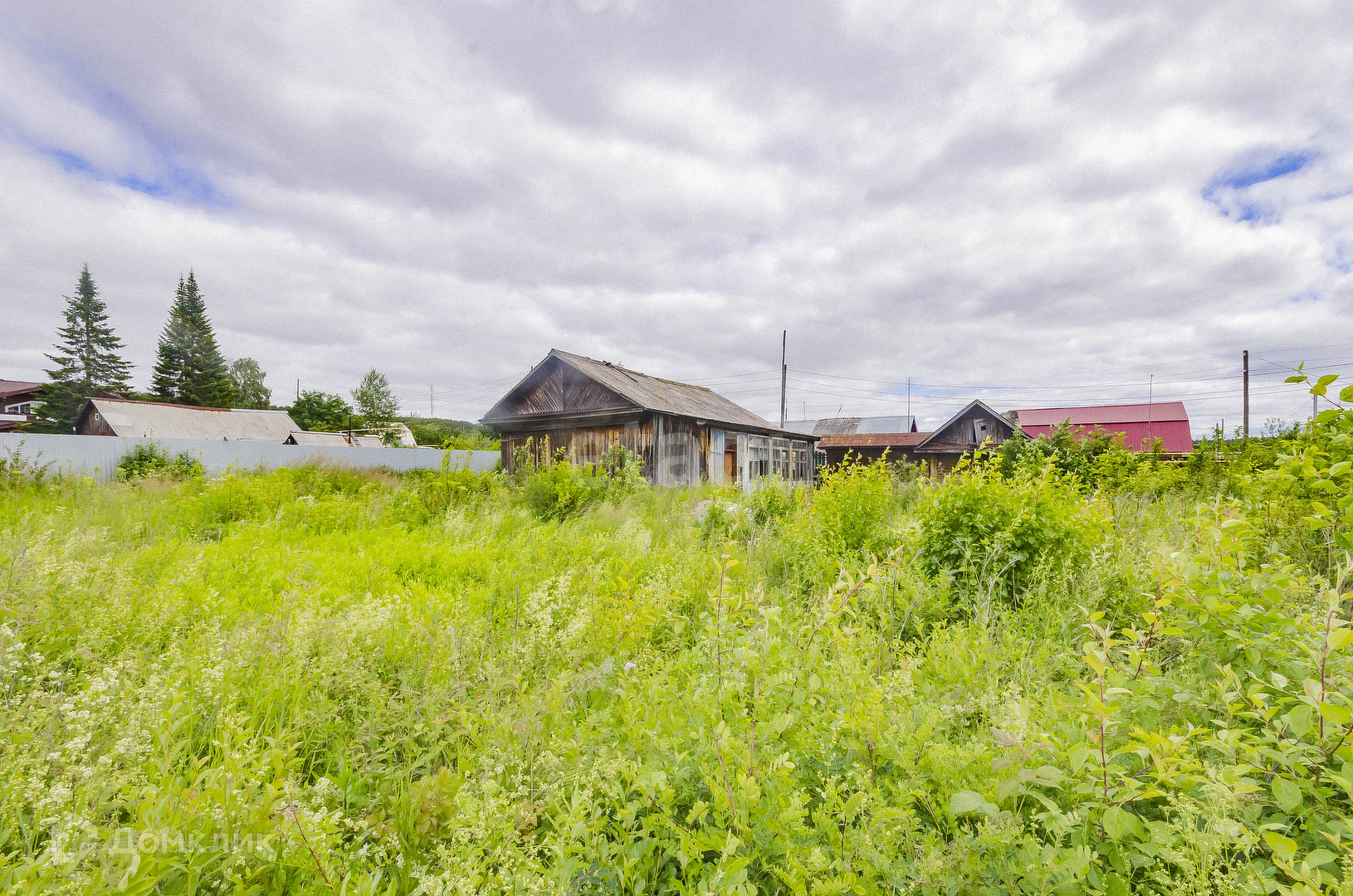 На участке стоит баня. С трёх сторон огорожен забором из профнастила.