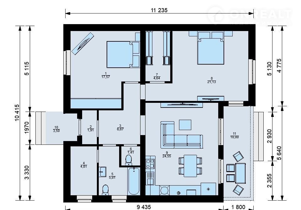 ✅две отдельные спальни — мастер-спальня (21,13 м²) с гардеробной и вторая комната (17,57 м²) под детскую или кабинет