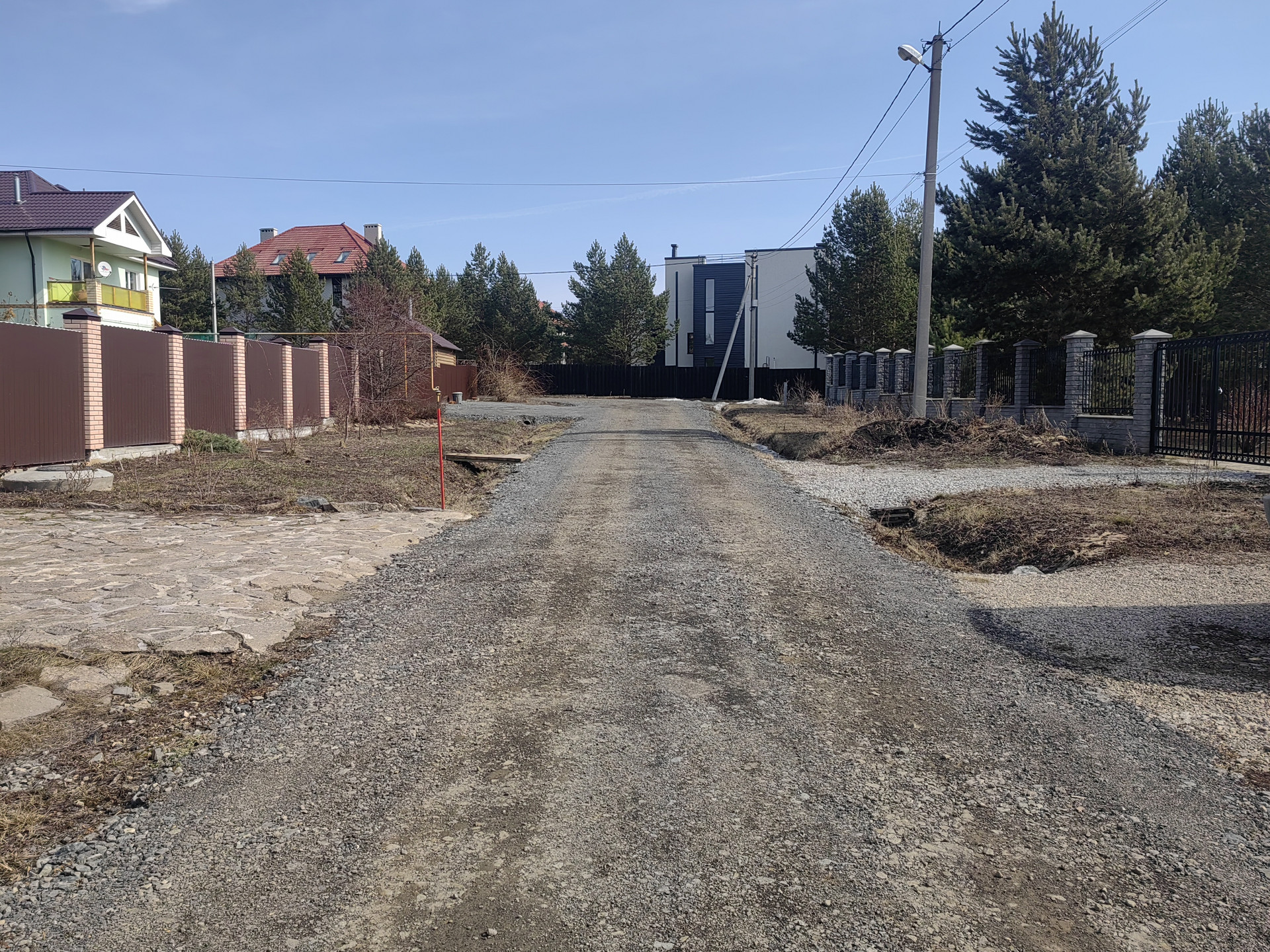 Соседи живут круглый год. Земли населённых пунктов для дачного строительства. Рядом открыт магазин Пятёрочка, скоро откроется Верный. Дороги сделаны асфальтовой крошкой.