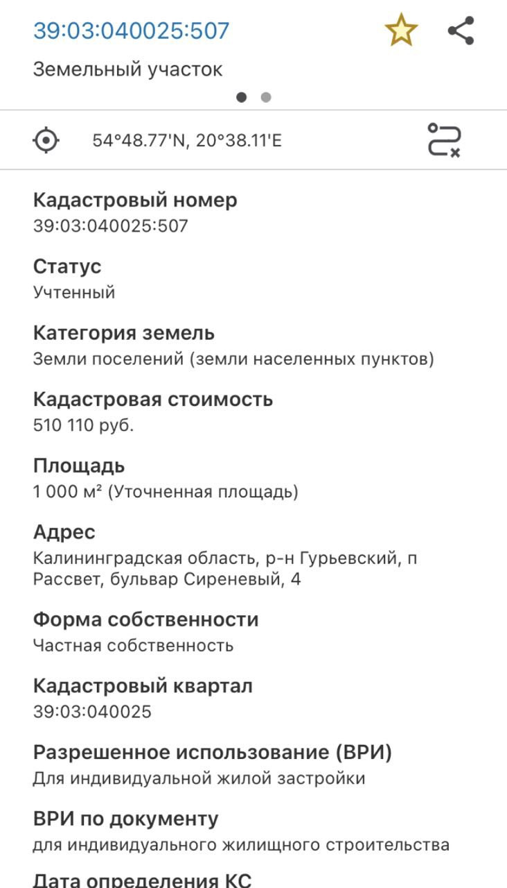 Площадь участка 1 000 м² (Уточненная площадь)