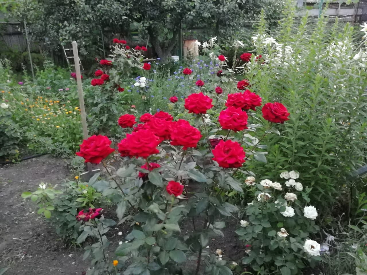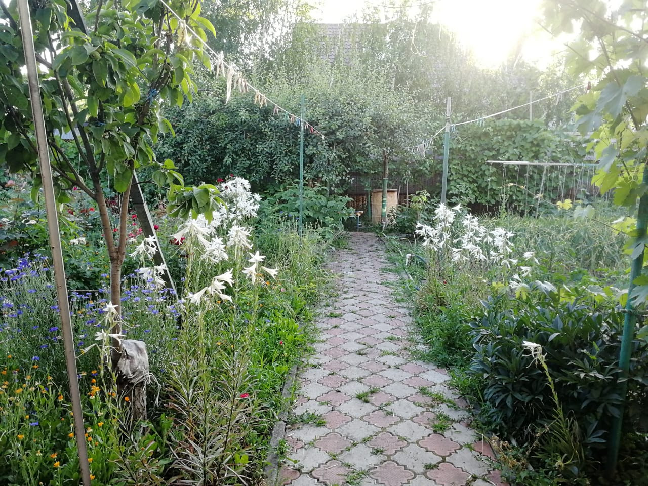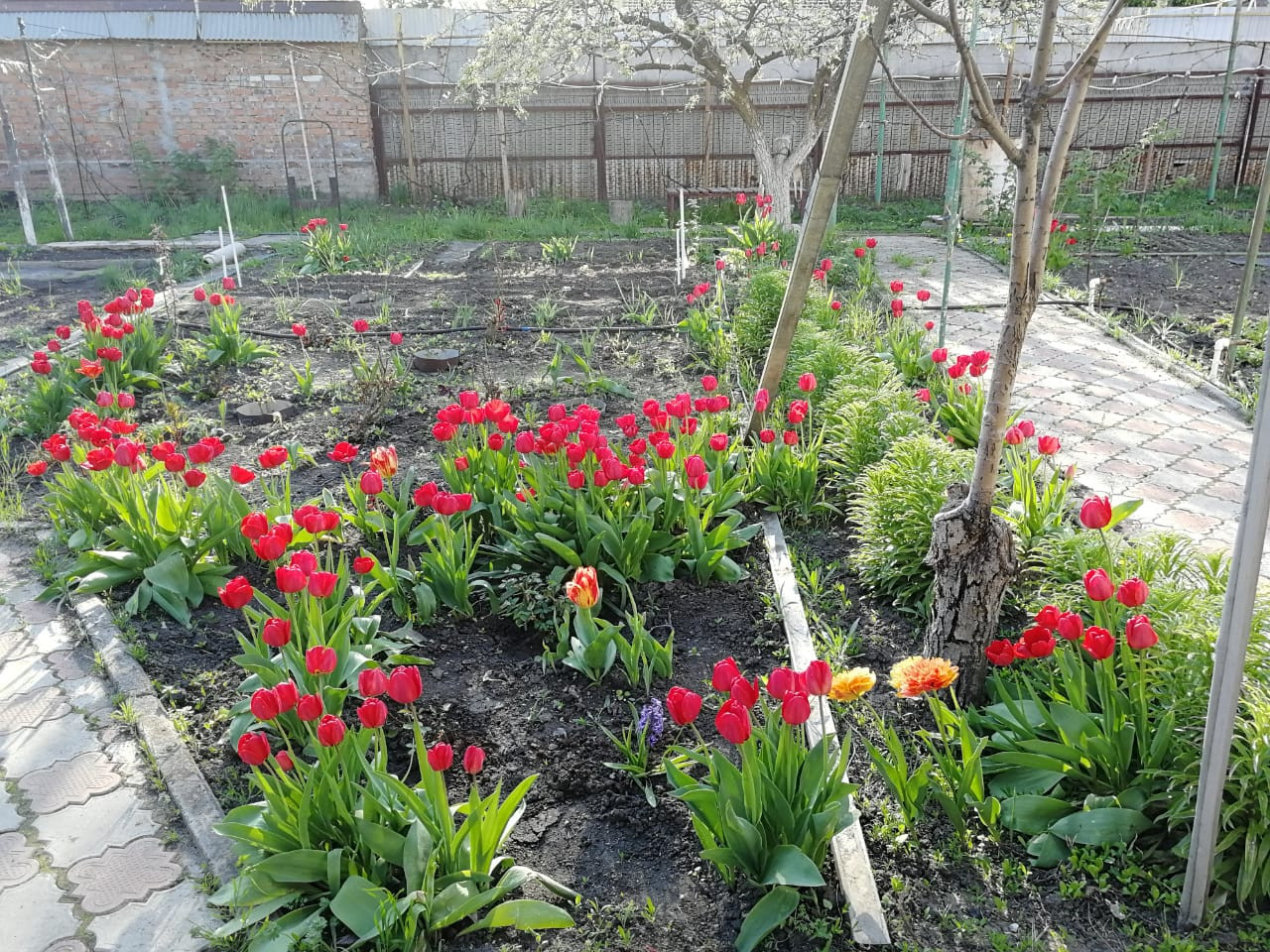 Плодовый сад (абрикосы, груши , яблони, вишня, черешня, грецкий орех и др). Розарий.
