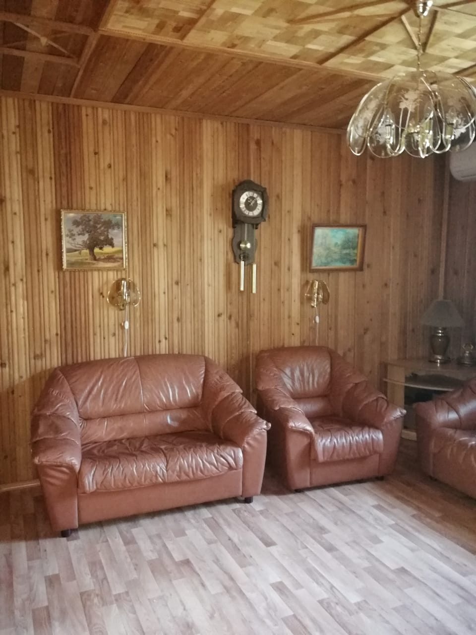 Гостиная (обшита изнутри целиком натуральным деревом), две спальни, кухня,