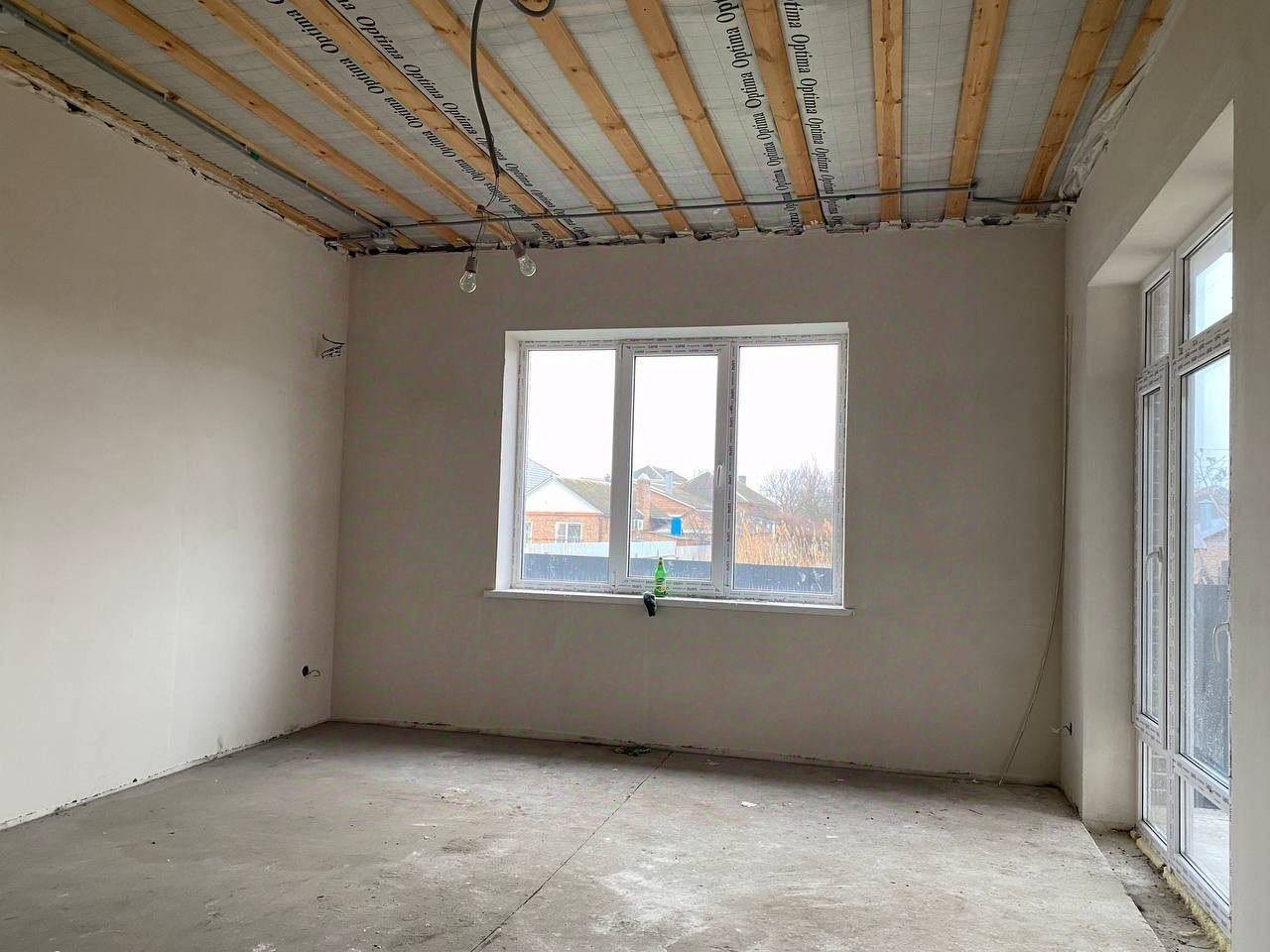(тёплый пол, раскинута электрика, септик на усастке, входная металлическая дверь)