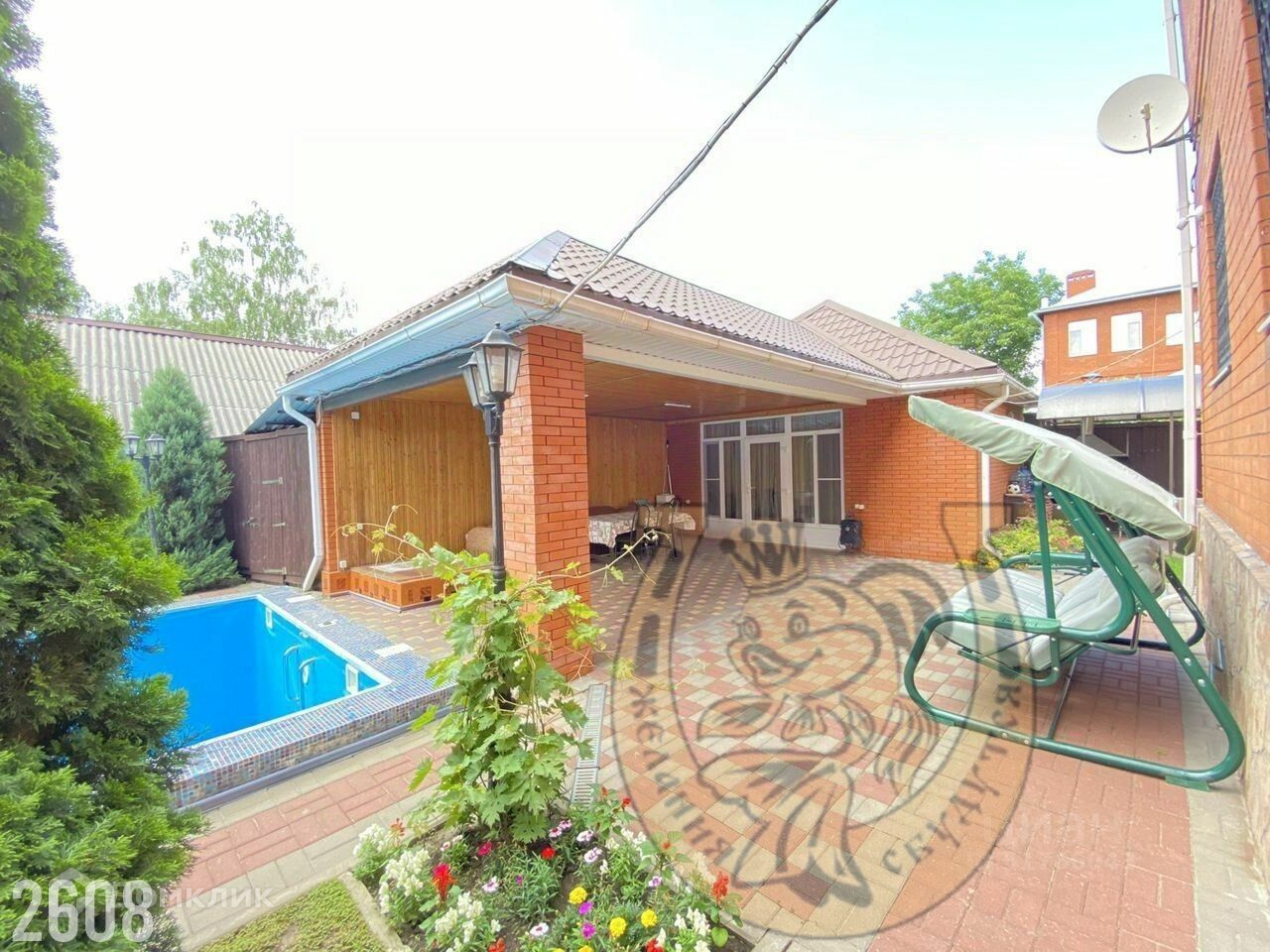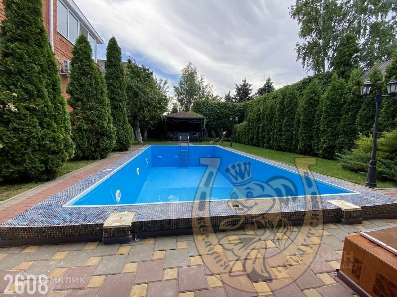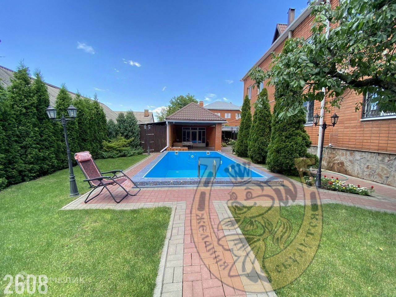 На заднем дворе имеются: уютная беседка, бассейн, летняя кухня, оборудованная мебелью и всей необходимой техникой, мануальная зона, уборная, душевая.