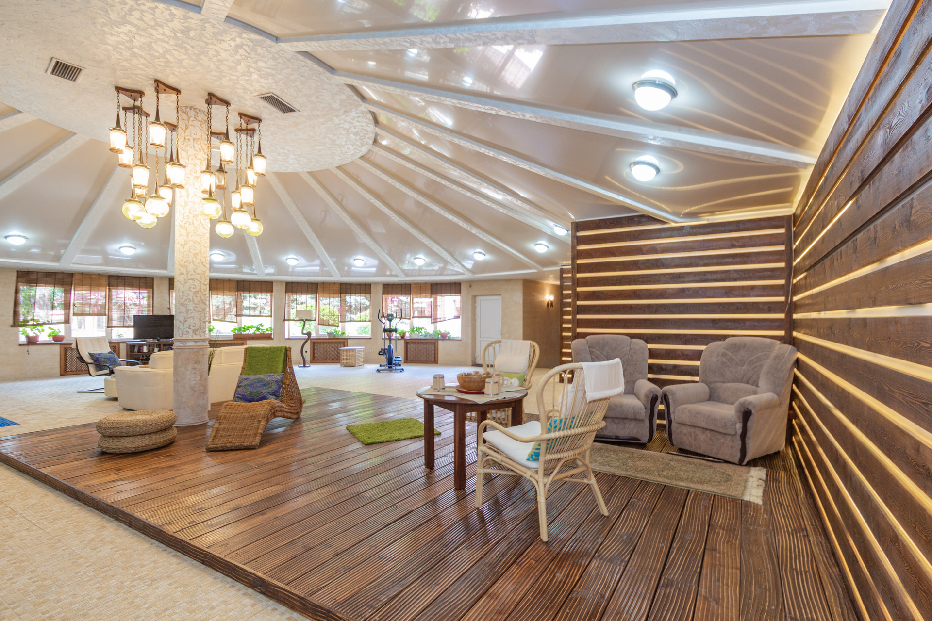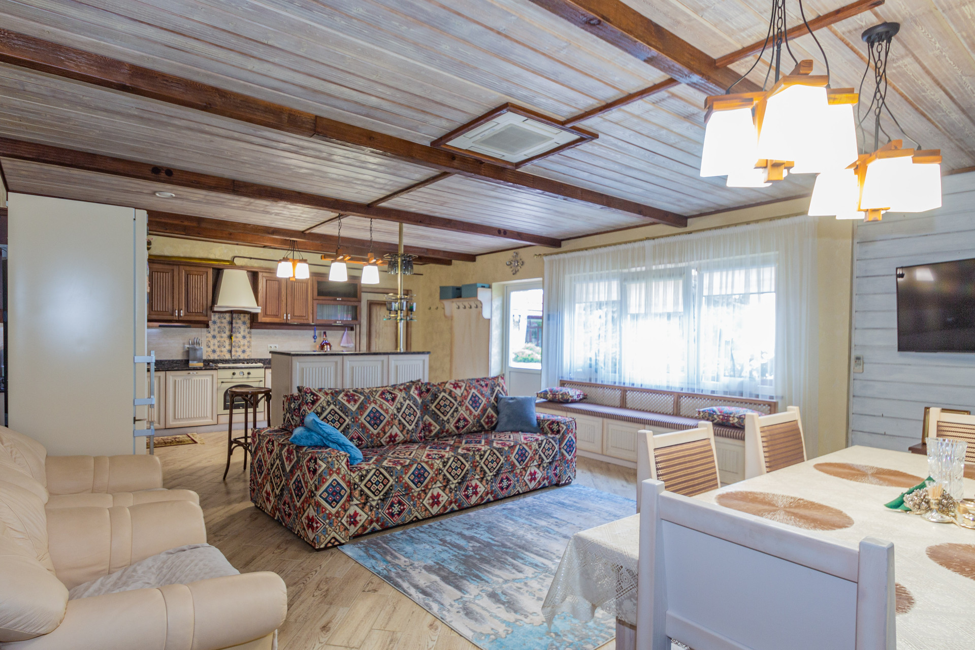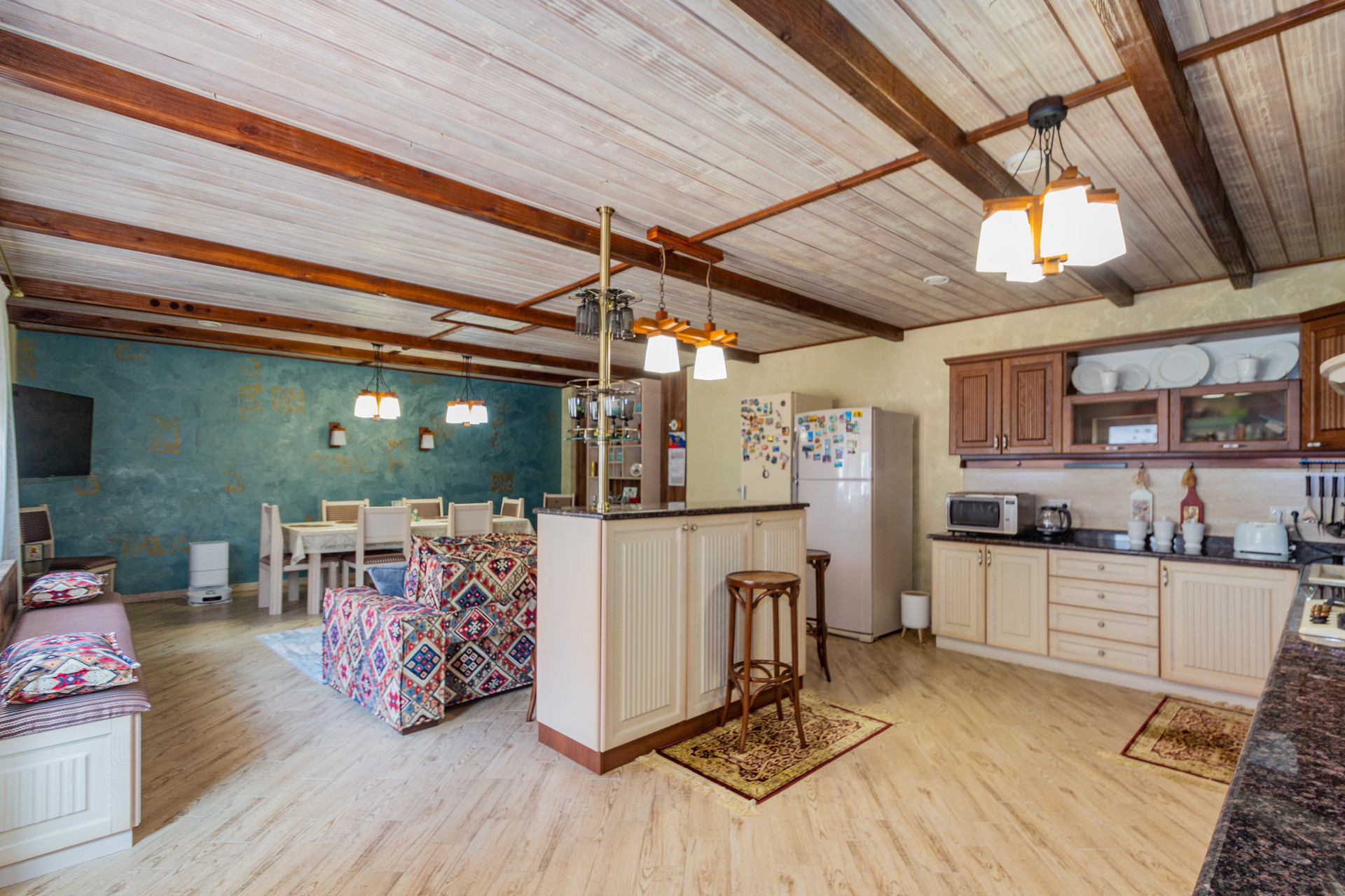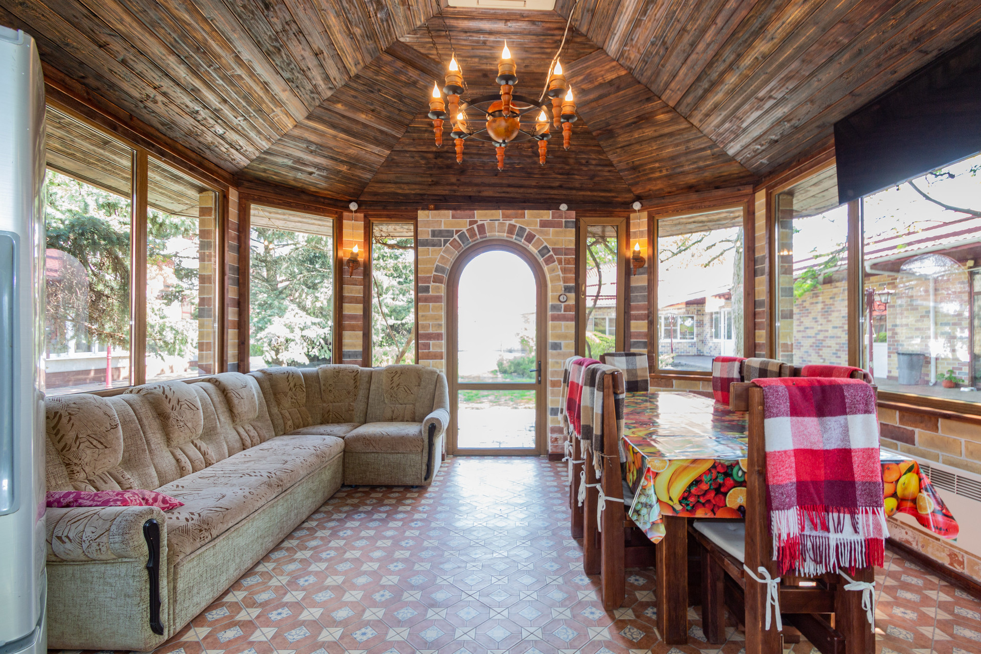 Также это летняя кухня с мангалом и выходом на приусадебный участок, где расположена уютная беседка, утопающая в зеленых насаждениях.