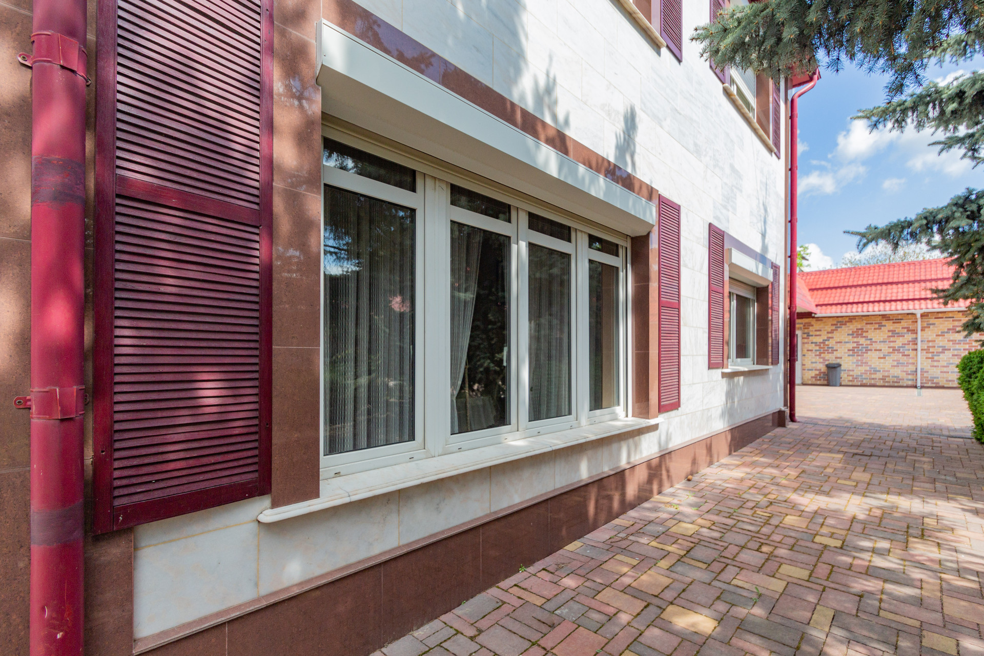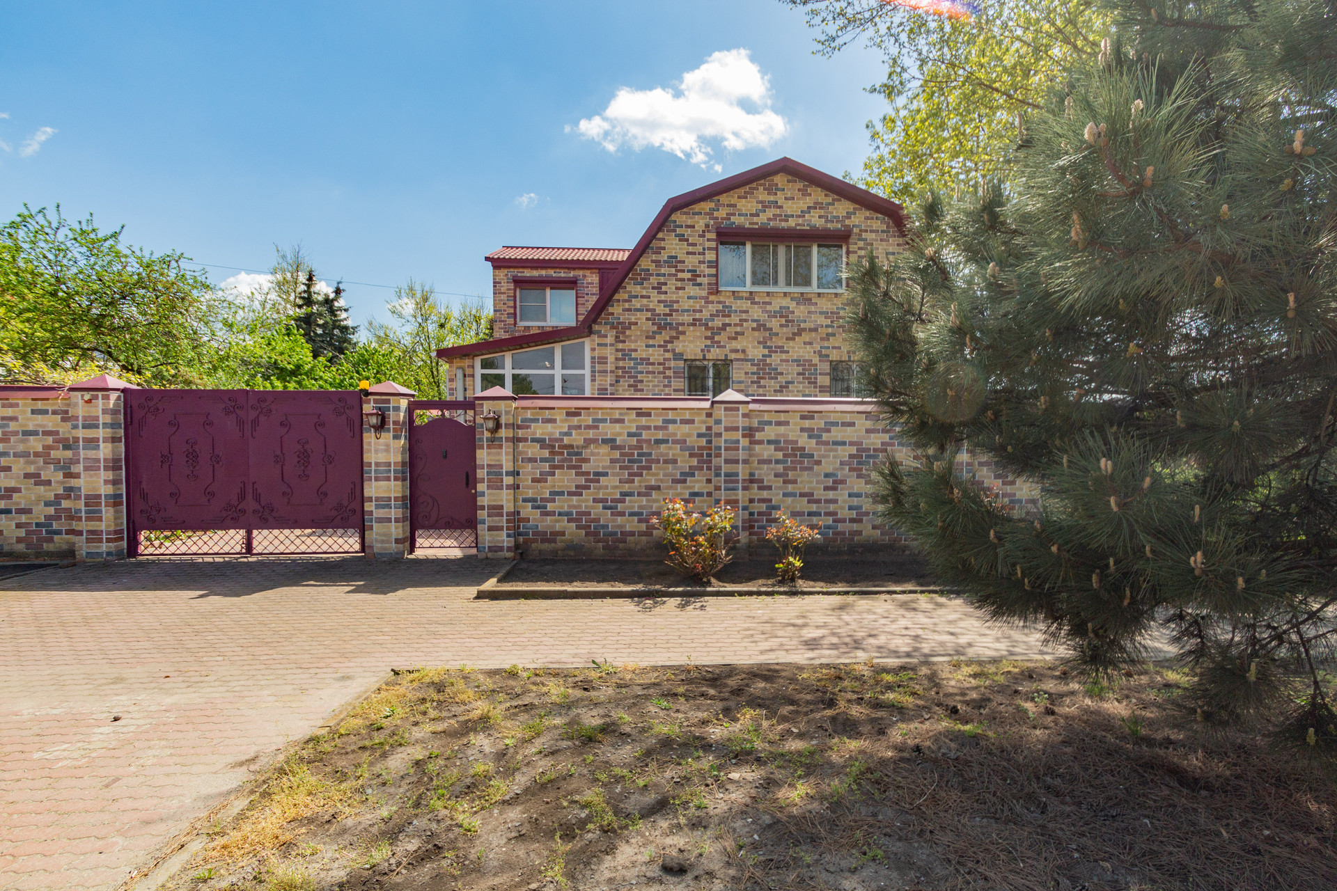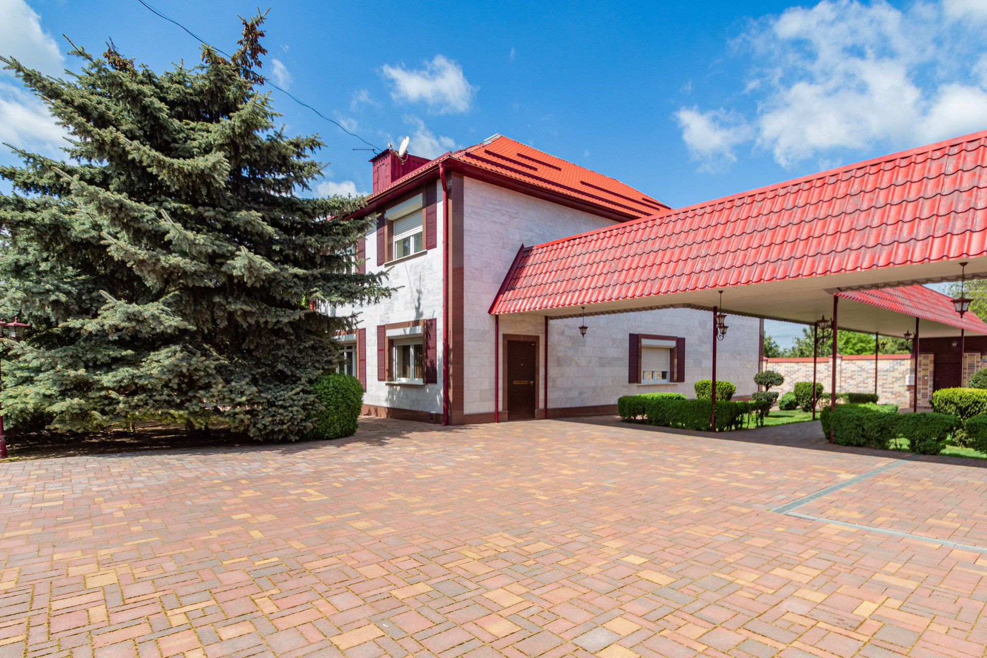 Двор в плитке, видеонаблюдение, ролл ворота и ставни на окнах, два въезда на участок, два гаража на несколько машино мест!