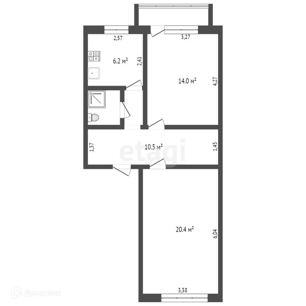 2-комнатная квартира, 53.8 м2, этаж 6 / 6, на продажу в поселке Рассвет, поселок Рассвет, 27