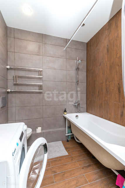 Тёплые полы на кухне, в коридоре, в ванной. Выложена плитка керамогранит.
