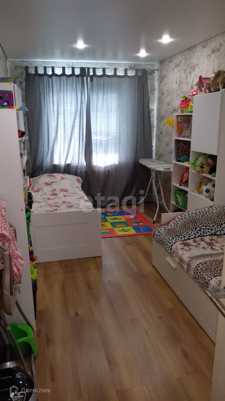 Во всех помещениях установлены пластиковые окна, межкомнатные двери, на полу ламинат, натяжные потолки со светодиодными светильниками, на стенах моющие обои.