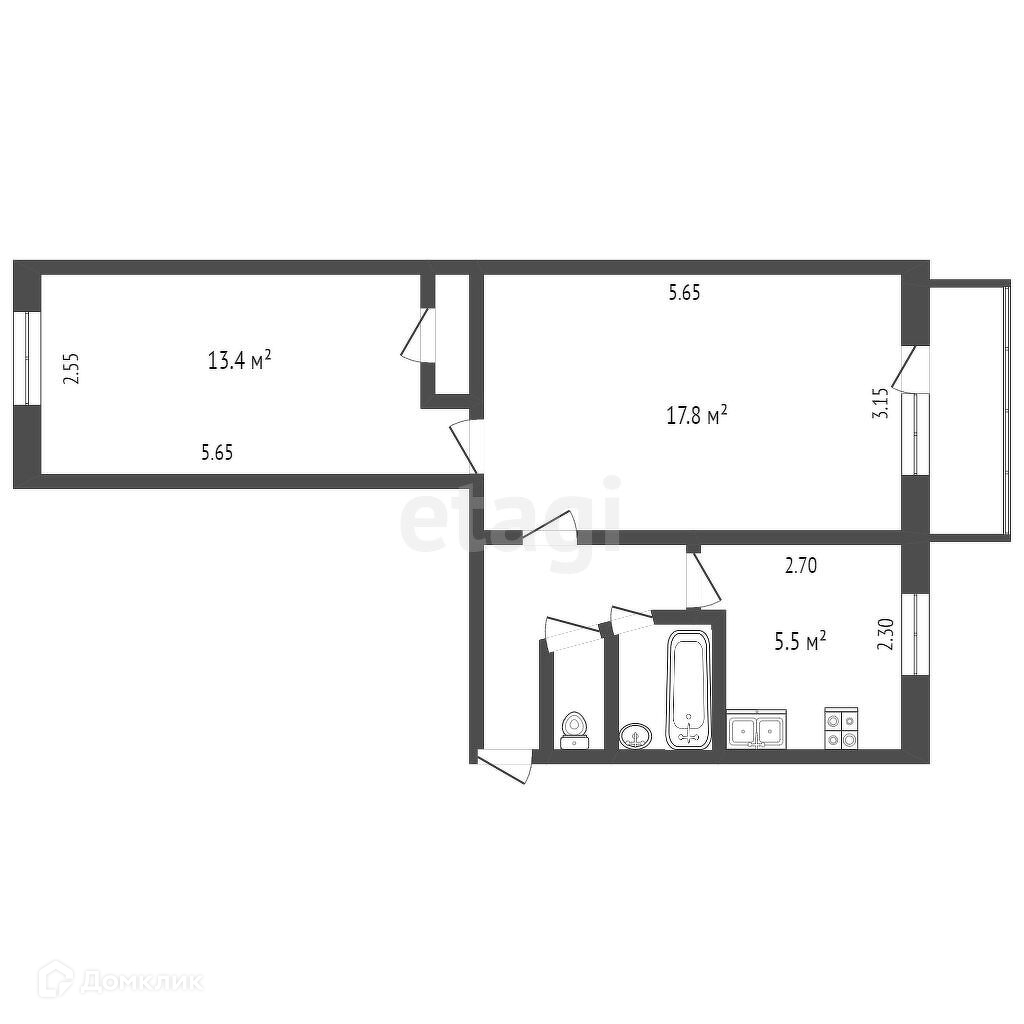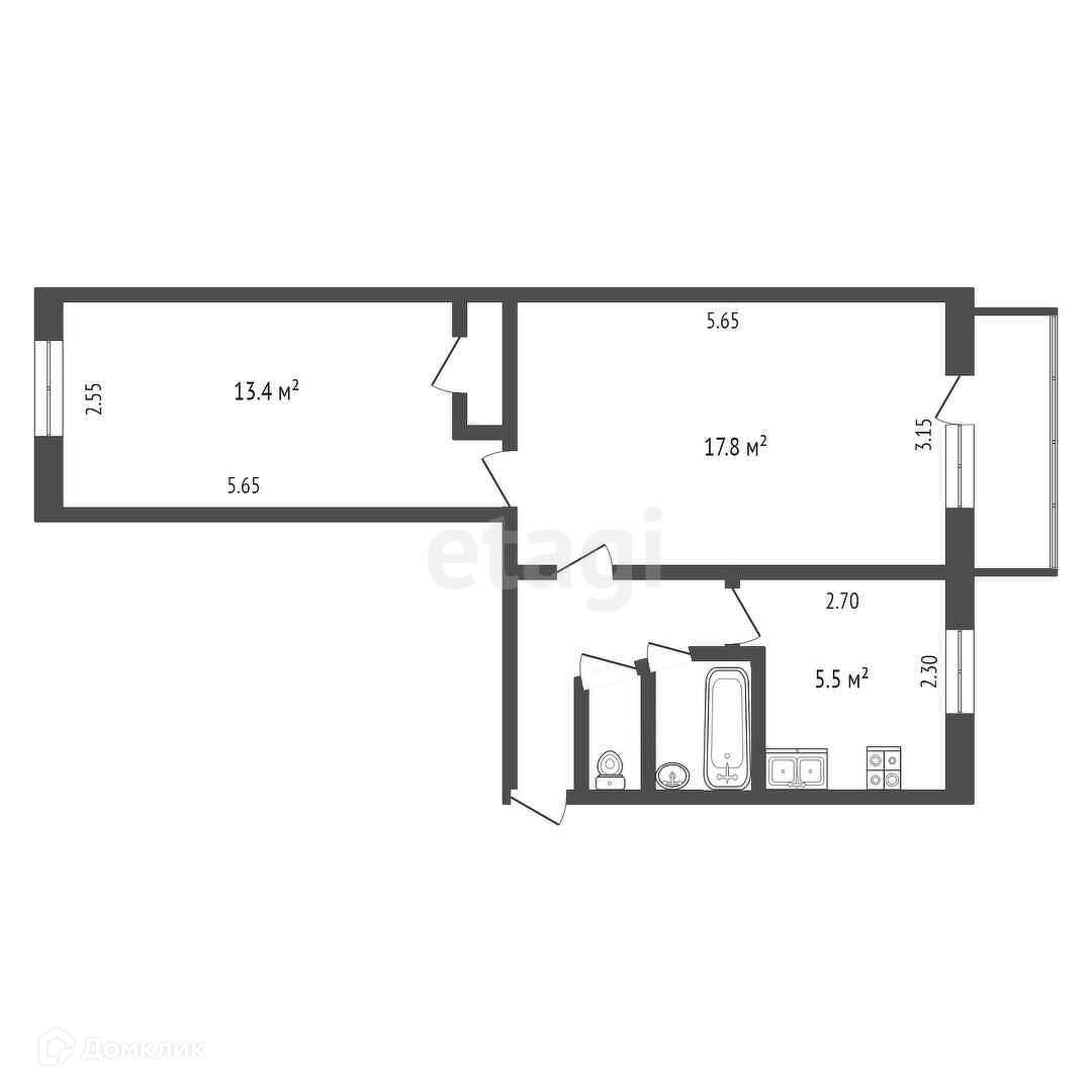В квартире смежная (20 кв. м) и изолированная (15 кв. м) комнаты, площадь кухни (6 кв. м). Санузел совмещен. Балкон (4,5 кв.м) застеклен.