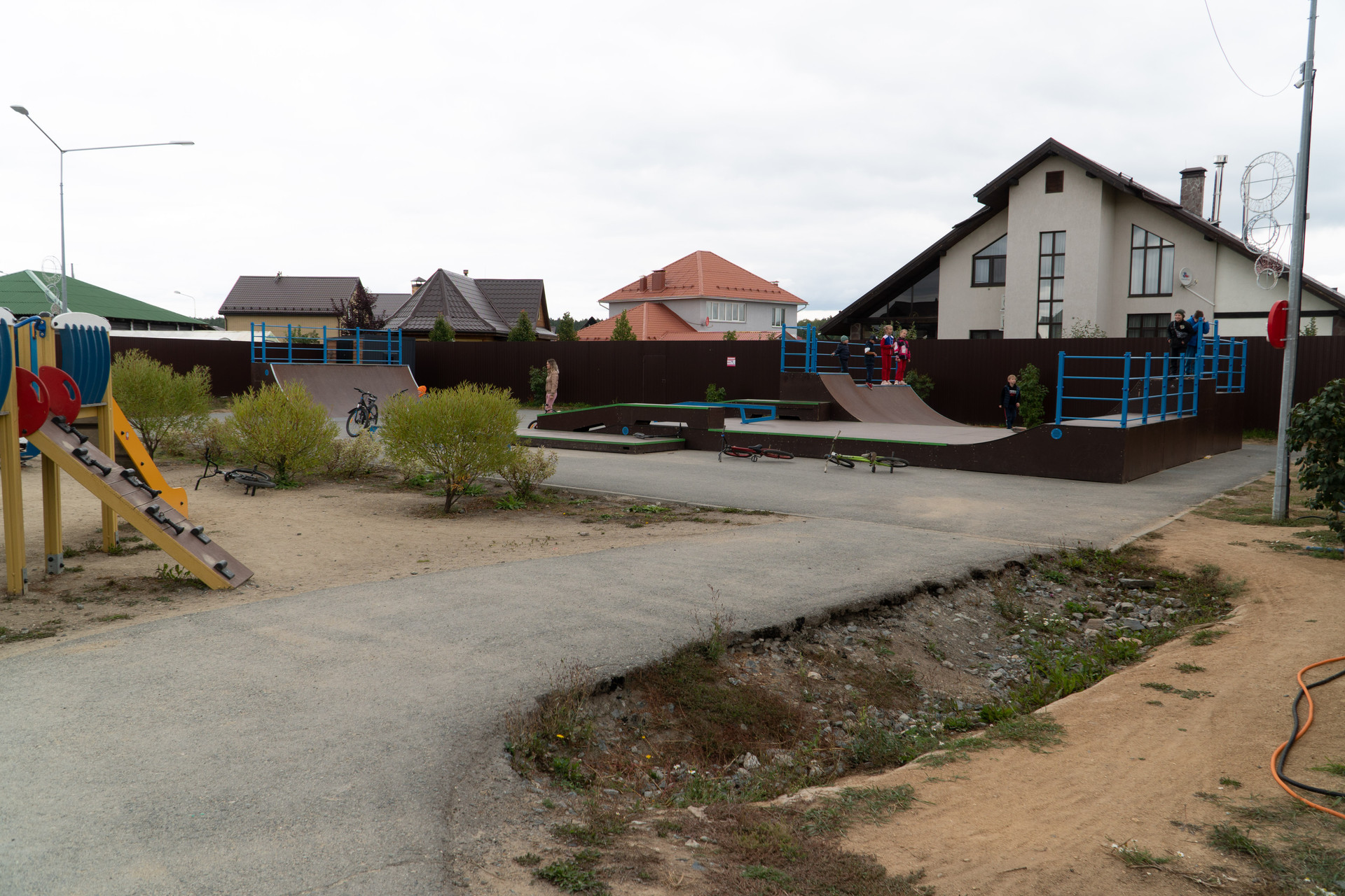 Непосредственно в КП «Алые паруса» имеются частный детский сад, две детские площадки, хоккейный корт, площадка для игры в мини футбол, баскетбол, волейбол, спортивная площадка с уличными тренажерами. Вся территория КП огорожена и охраняется, оборудована системой видеонаблюдения.