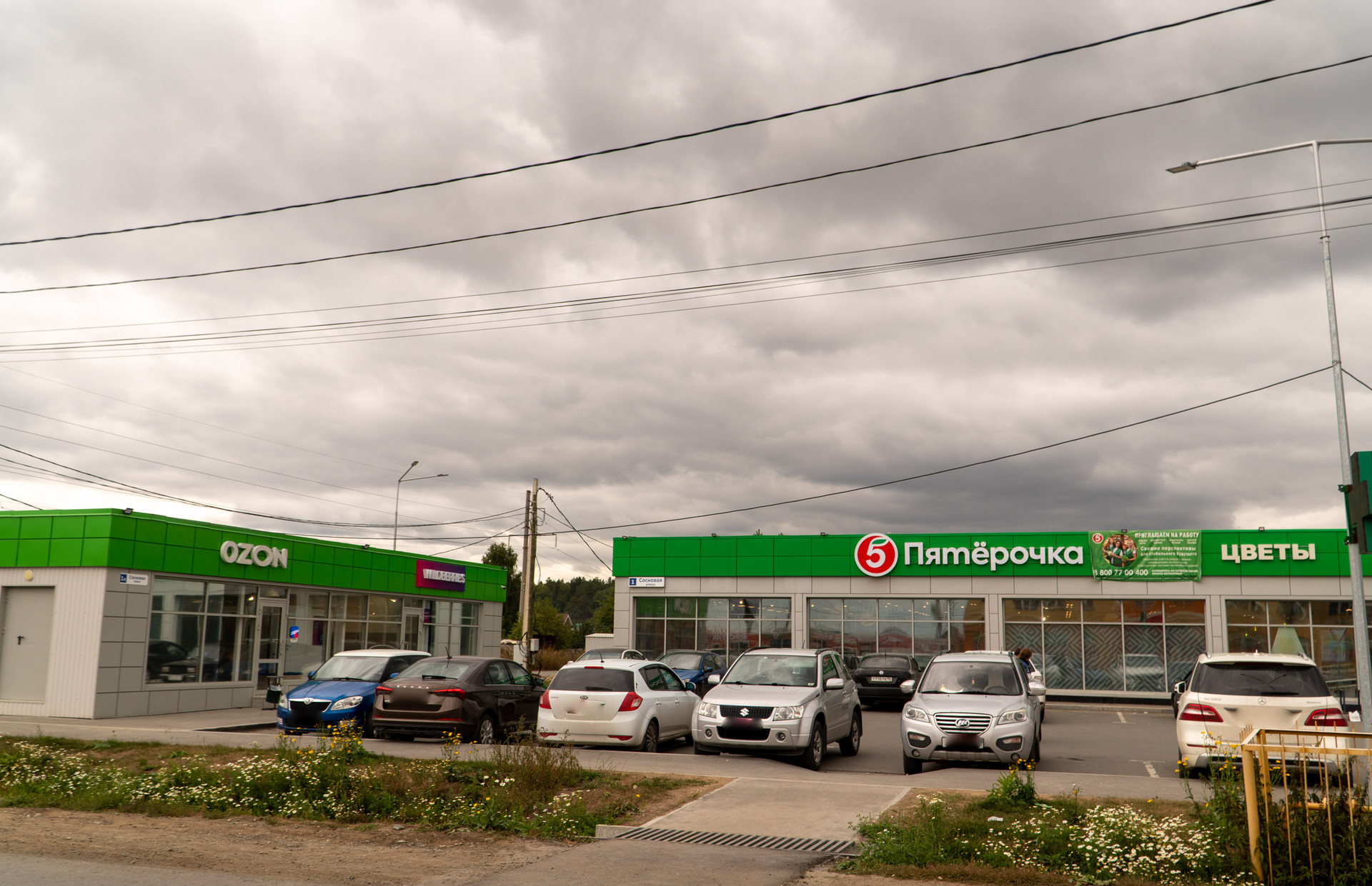 В поселке Растущий имеются: кофейни, продуктовые мини магазины, аптека, хозяйственный магазин, сетевые магазины «Монетка», «Верный», «Пятерочка». Пункты выдачи товаров Озон, Вайлберрис.