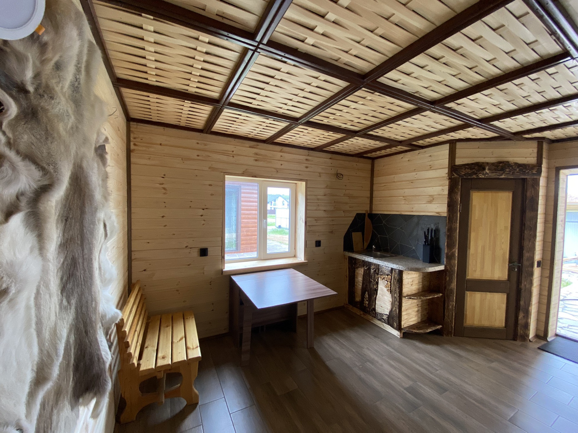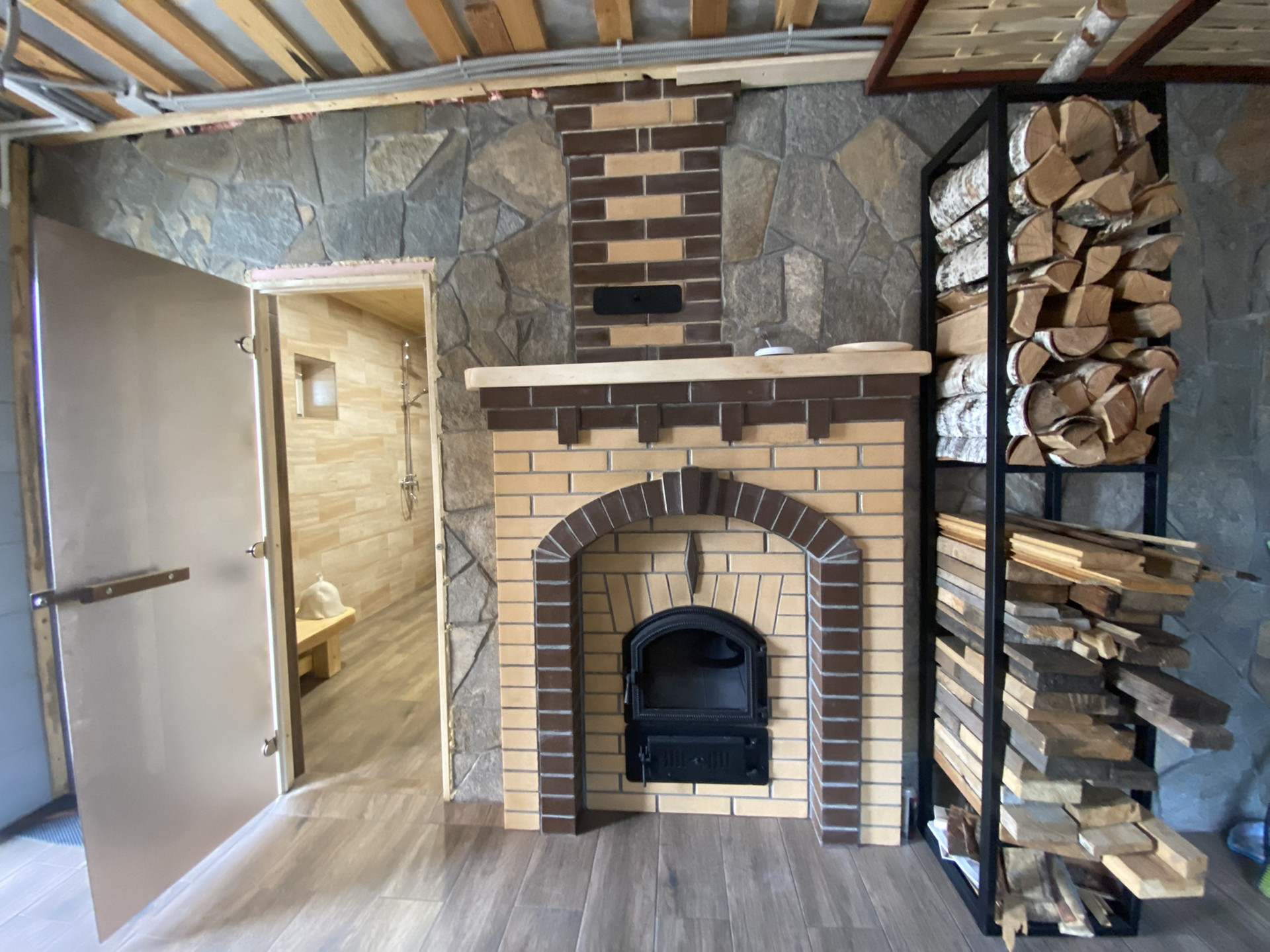 Отделка бани и гаража - шведская утеплённая плита.