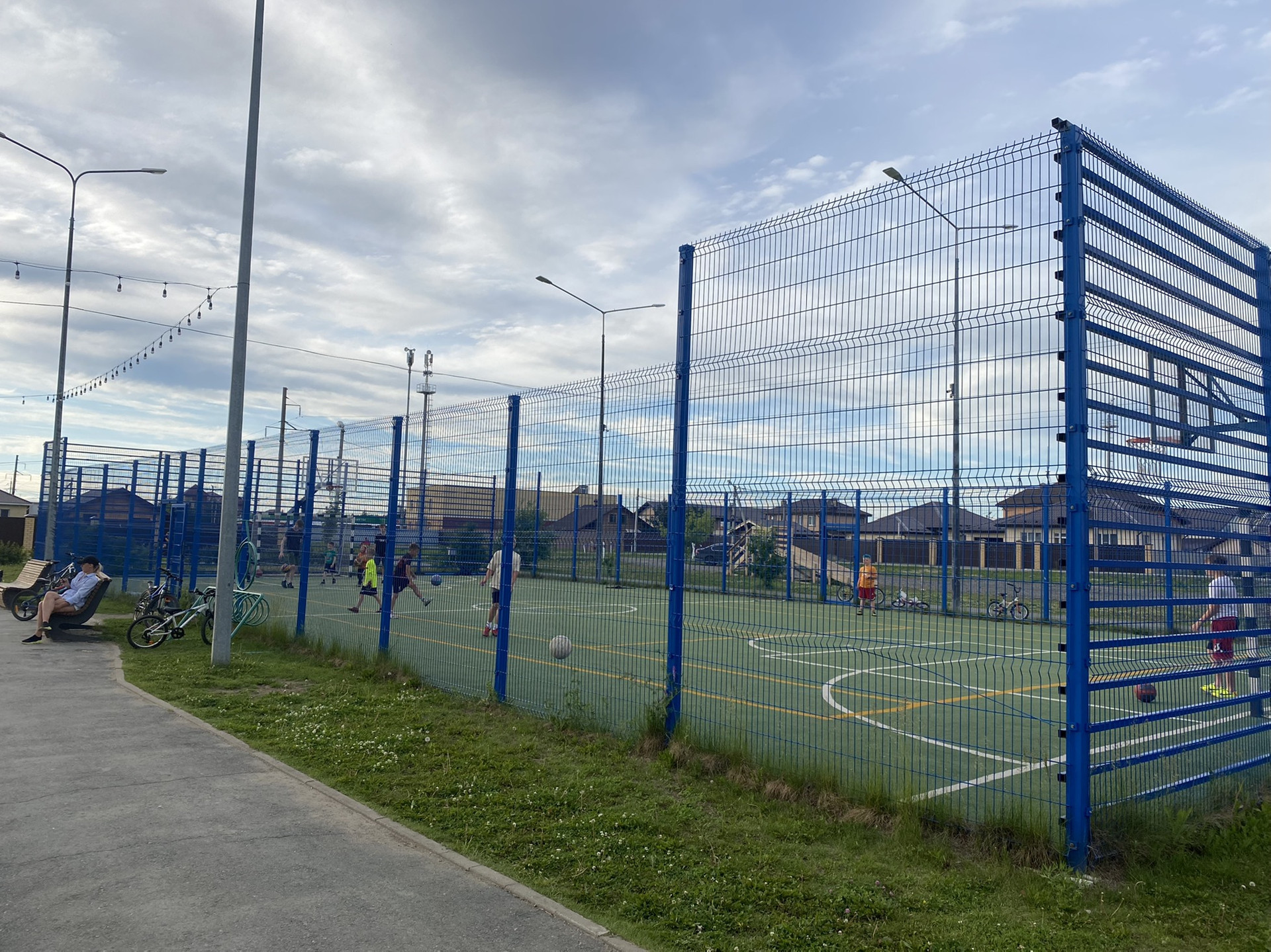 Инфраструктура: частный детский сад, теннисный корт, 2 детские площадки, футбольное поле, салон красоты, роллердром, батут, три сетевых магазина, досуговый центр. Всё под круглосуточной охраной! Везде чистота, дороги чистят! Организован детский школьный автобус.