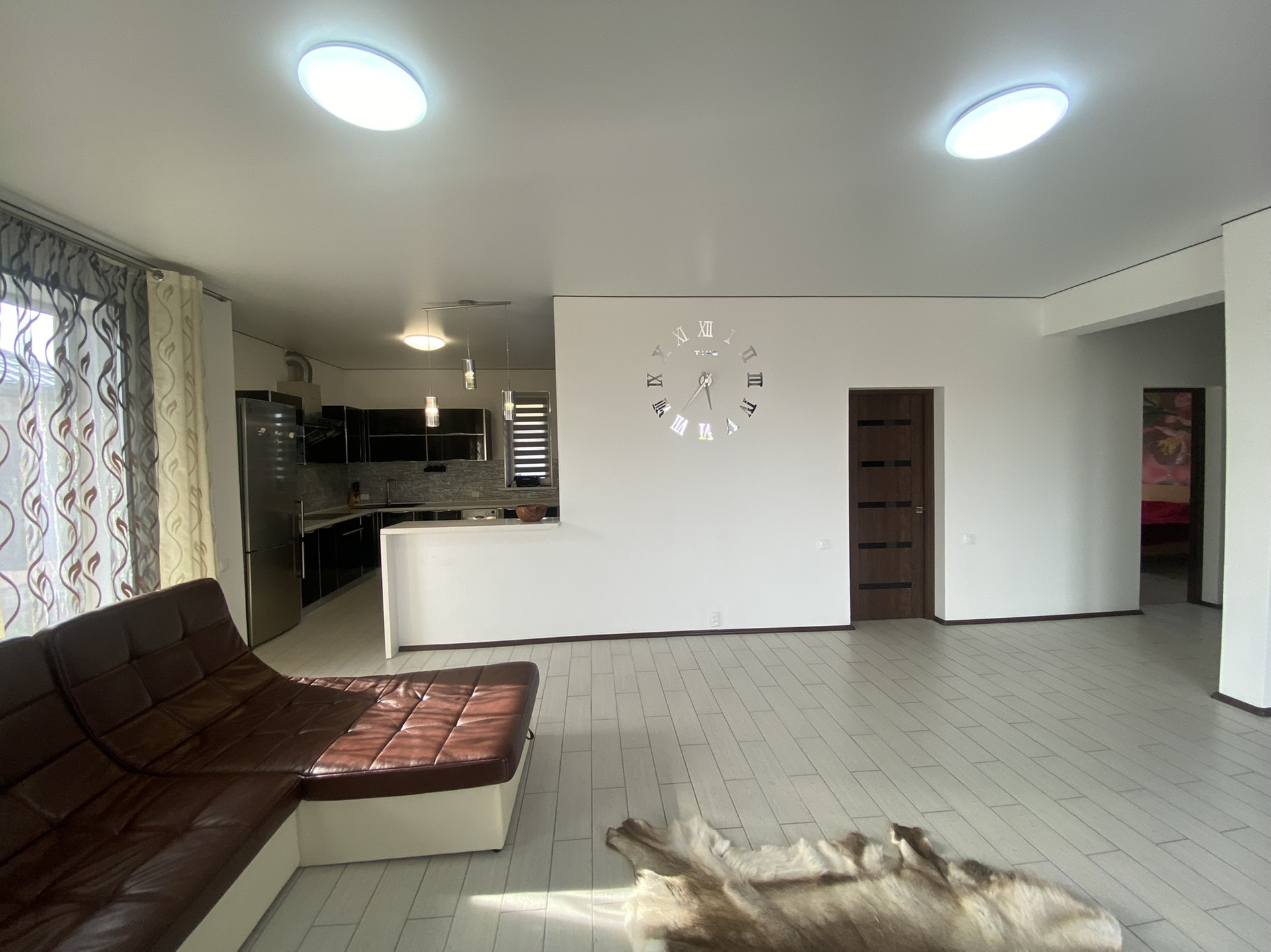 Дом общей площадью 122 м2 + летняя терраса под крышей. Просторная прихожая, огромная гостиная с кухней с выходом на участок, большая ванная комната с сауной, 3 спальни с выходом на участок, котельная. Высота потолков 3,2 метра.