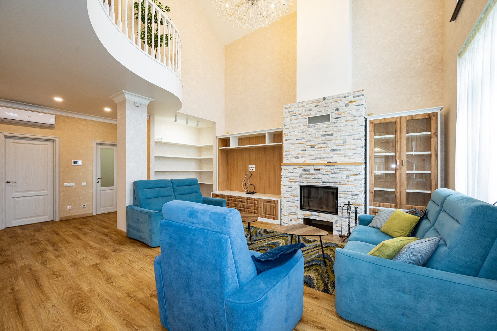 В доме выполнен дизайнерский ремонт из качественных материалов. Особый шарм и уют гостиной придает настоящий камин с чугунной топкой – здесь приятно собираться всей семьей зимними вечерами, слушать потрескивание дров и наблюдать танец огня. А в летнее время магнитом для всех домочадцев становится большая веранда (25 м2),