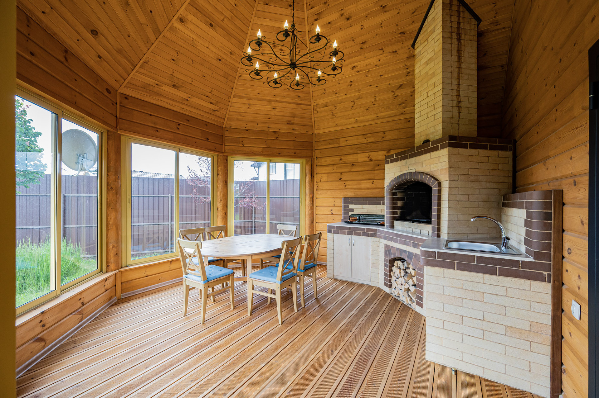 В доме (161.9 кв.м) выполнен дизайнерский ремонт из качественных материалов. Есть большая веранда с панорамными окнами, откуда можно любоваться красотами природы и вдыхать головокружительный аромат луговых цветов и трав.