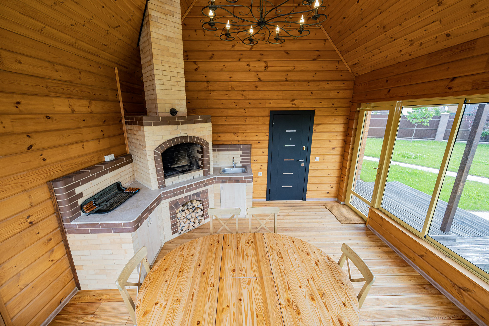 Построена баня ( 60 м 2) из клееного бруса с крытой верандой и мангальной зоной. В бане есть комната отдыха, душевая, санузел и парная с соляными блоками, как в натуральной соляной пещере.