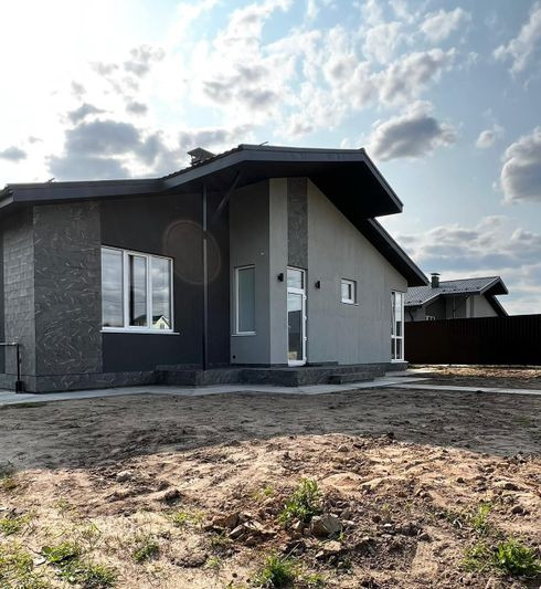 Продается одноэтажный дом 2017 года постройки, площадью 105 кв.м. ИЖС, прописка. Коммуникации: септик, скважина. Тёплый пол, высота потолков 3.20м., 2 санузла с ванной и душевой, небольшая открытая веранда с выходом из гостиной, вход в бойлерную с улицы. Подводка сантехники внутренняя, установлены фильтра для очистки воды, кондиционеры, двери с магнитными замками. Участок 8 соток, сухой, ровный, межевание выполнено. Из дополнительных строений, предусмотрен навес под два автомобиля. Забор из профнастила.  Один взрослый собственник, прямая продажа. Фото практически со всех этапов строительства. Ипотека и сертификаты возможны.